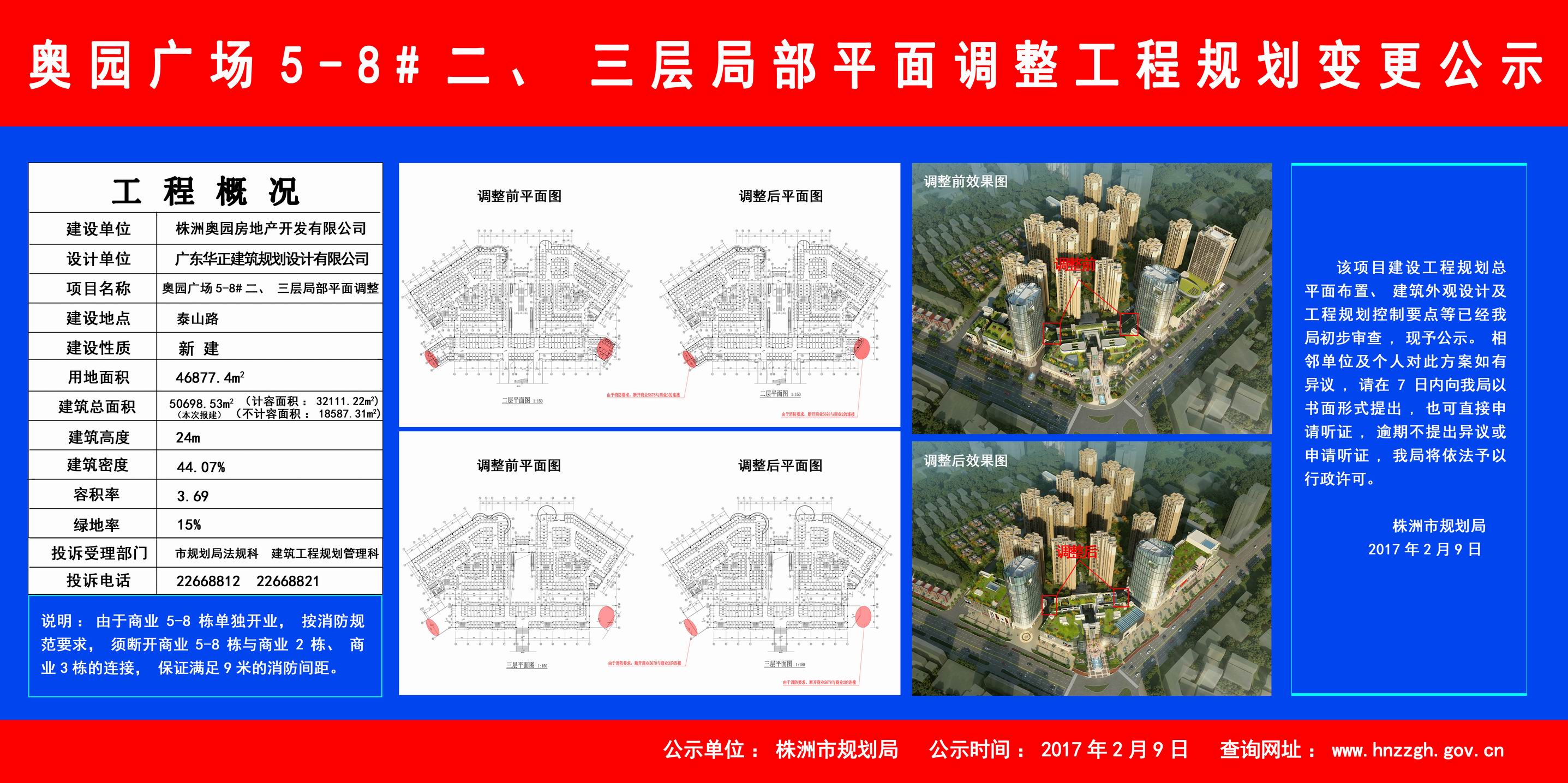 株洲奥园房地产开发有限公司(奥园广场5-8#二、三层局部平面调整)