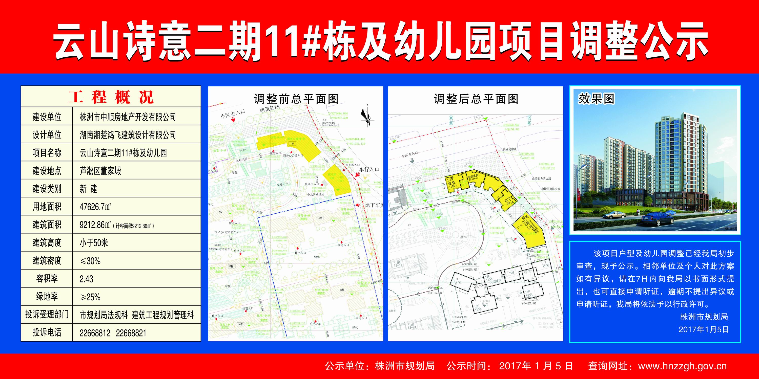 株洲市中顺房地产开发有限公司(云山诗意二期11栋及幼儿园调整)