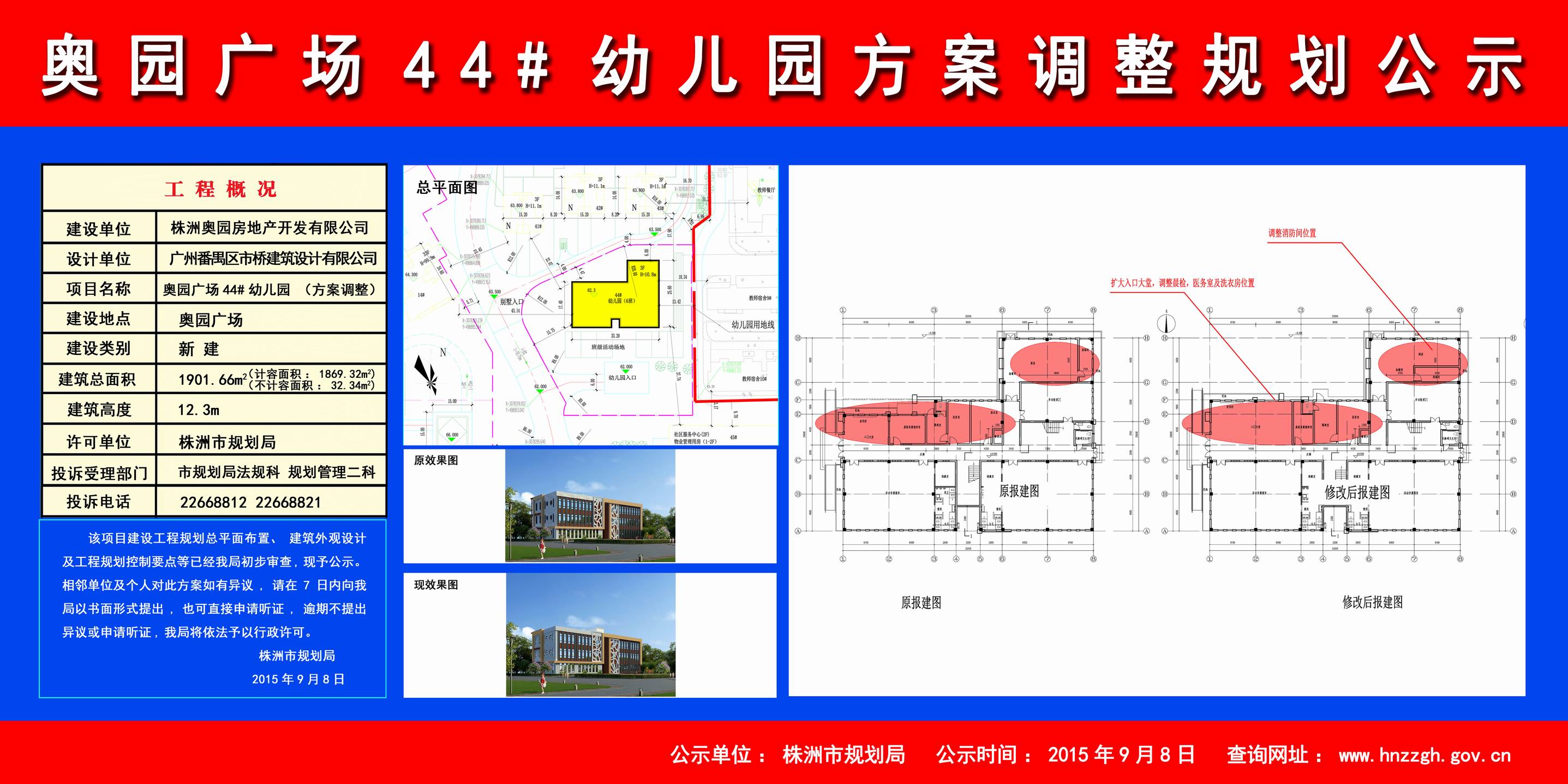 株洲奥园房地产开发有限公司(奥园广场44#幼儿园方案调整)