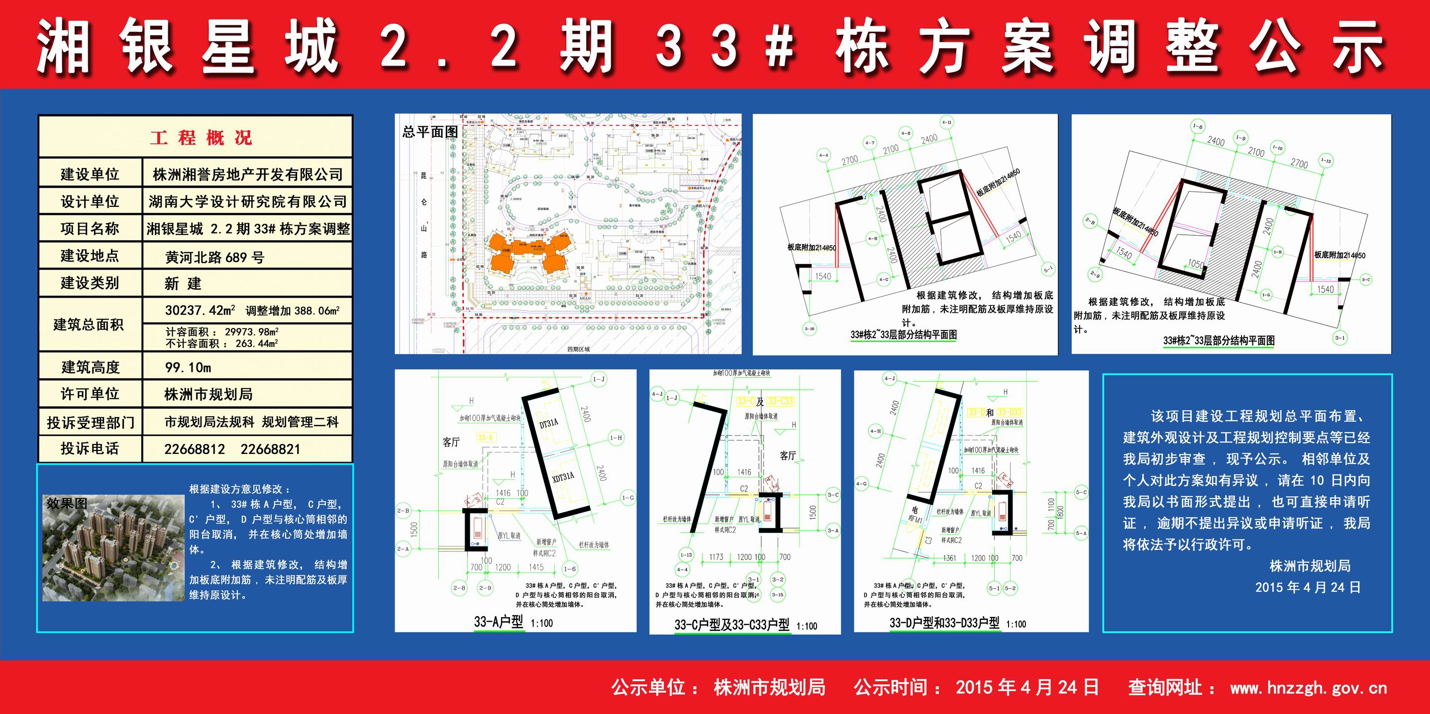 株洲湘誉房地产开发有限公司(湘银星城2.2期33#栋方案调整)
