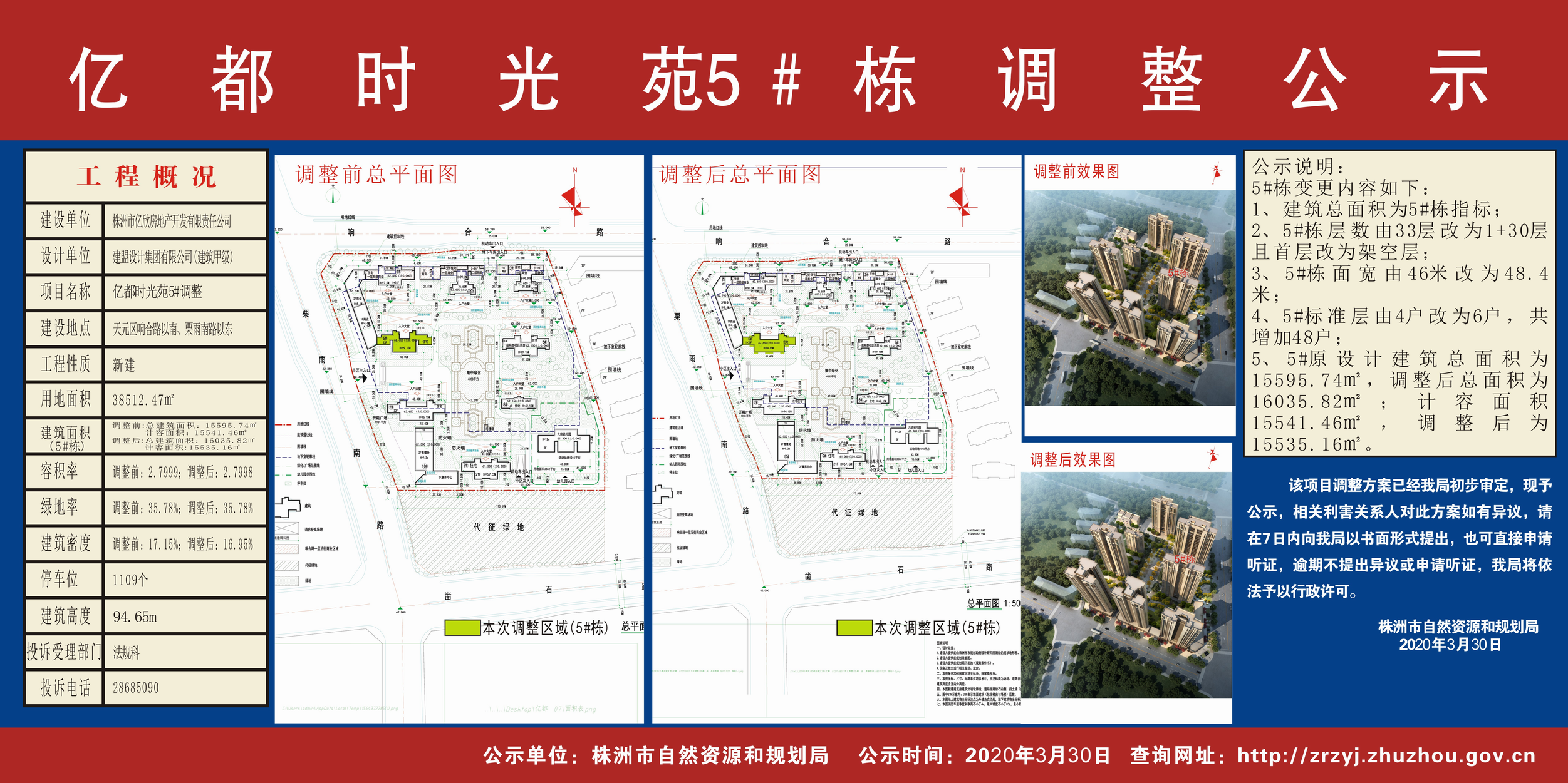 株洲市亿欣房地产开发有限公司(亿都时光苑5 # 栋调整公示)2