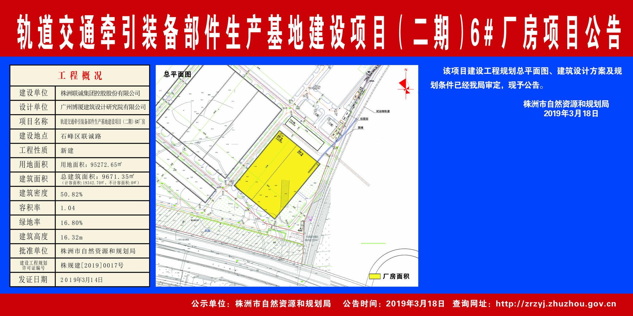 株洲联诚集团控股股份有限公司[轨道交通牵引装备部件生产基地建设项目(二期)6#厂房]