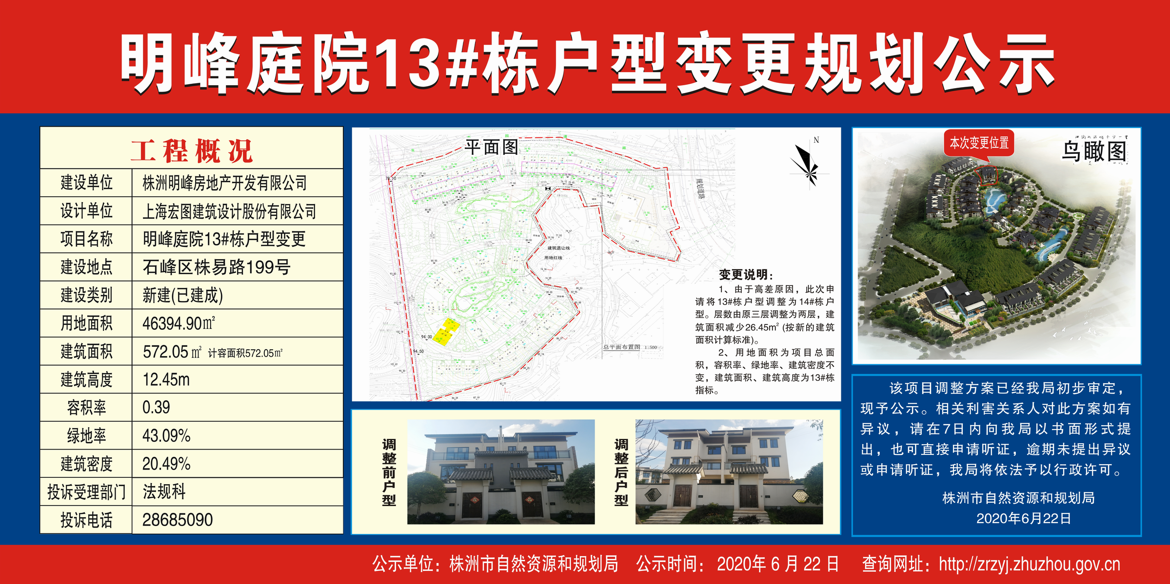 株洲明峰房地产开发有限公司(明峰庭院13#栋户型变更)2