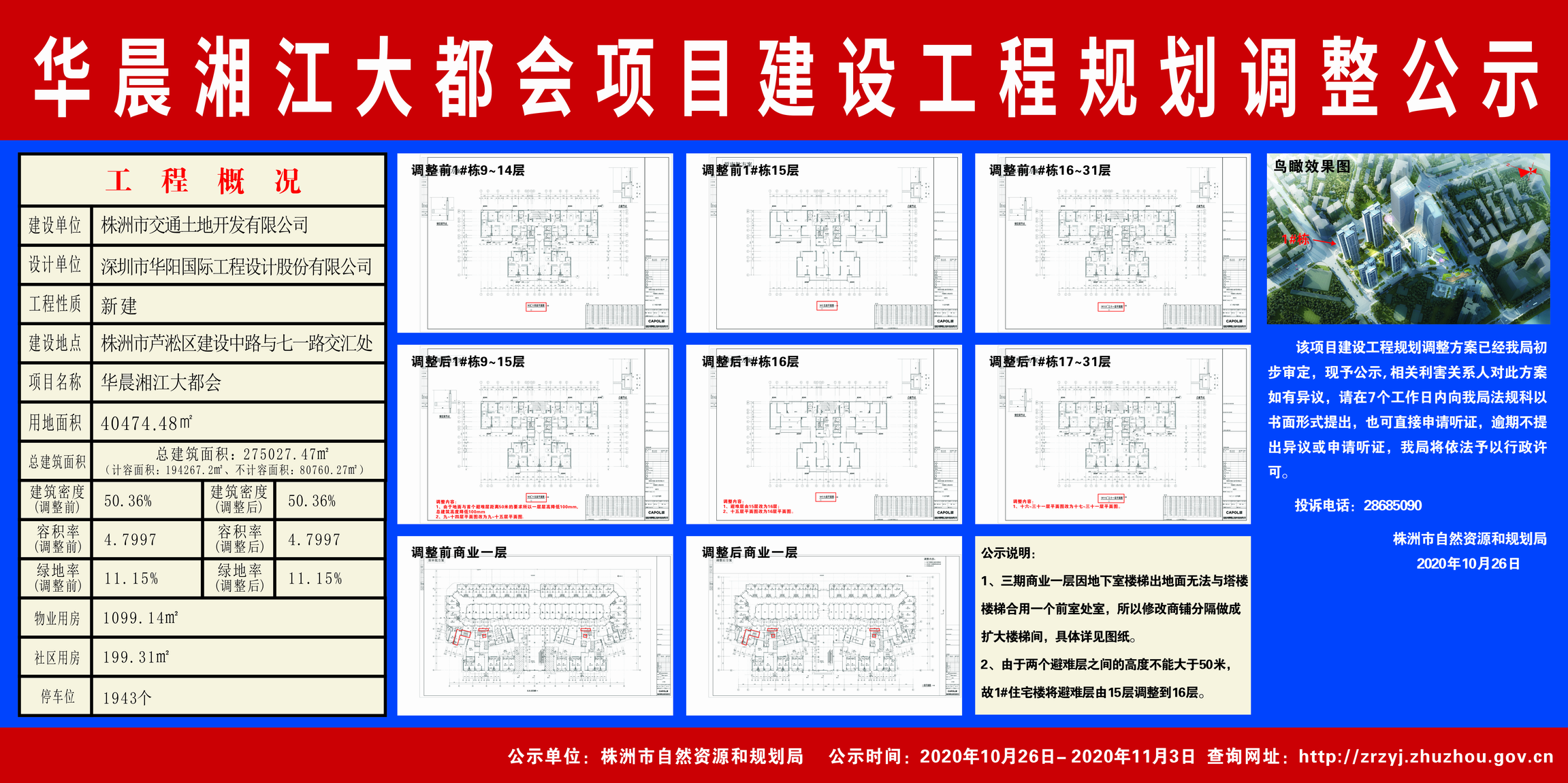 株洲市交通土地开发有限公司(华晨湘江大都会项目调整公示)2