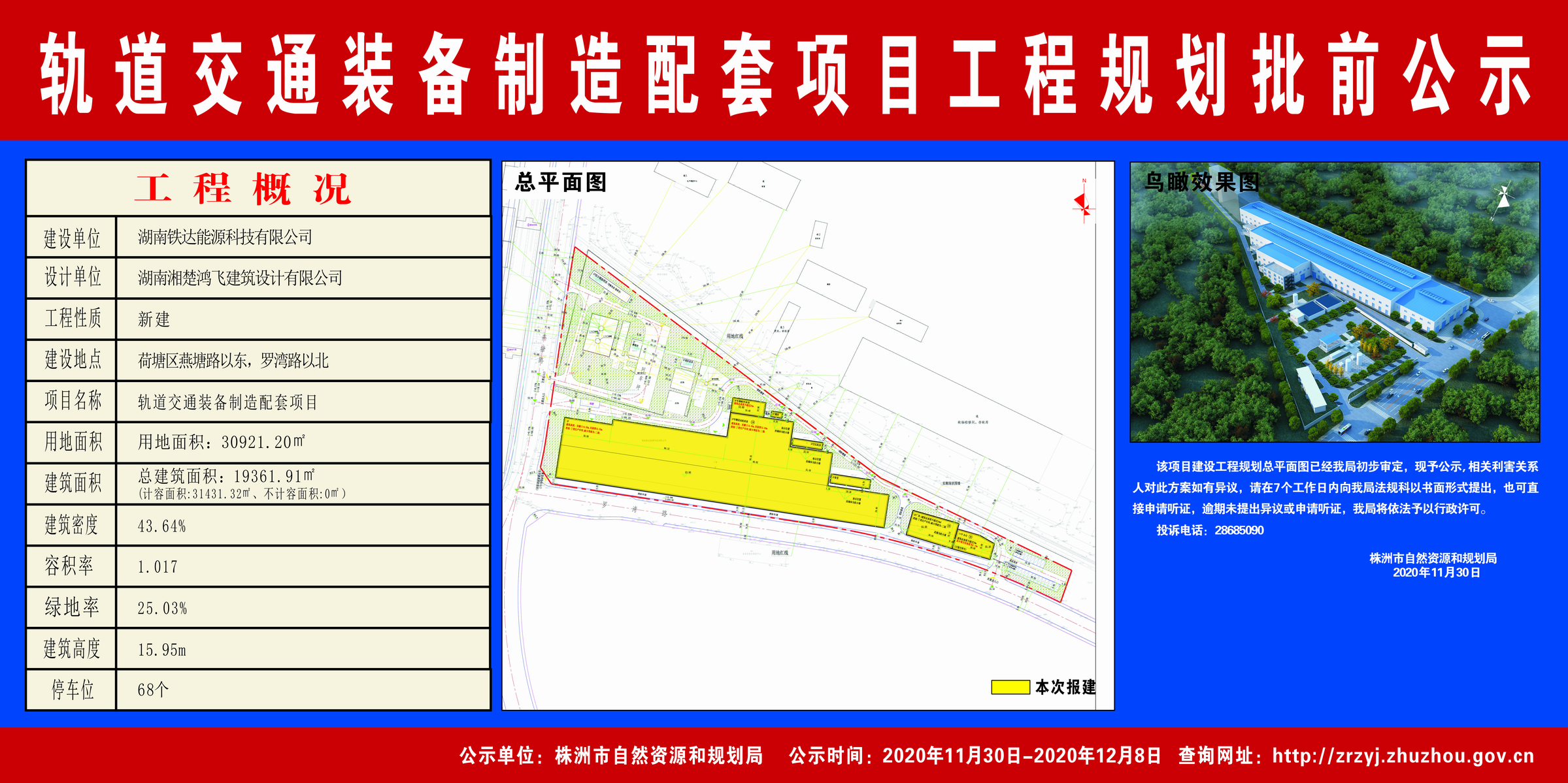 湖南铁达能源科技有限公司(轨道交通装备制造配套项目工程规划批前公示)2