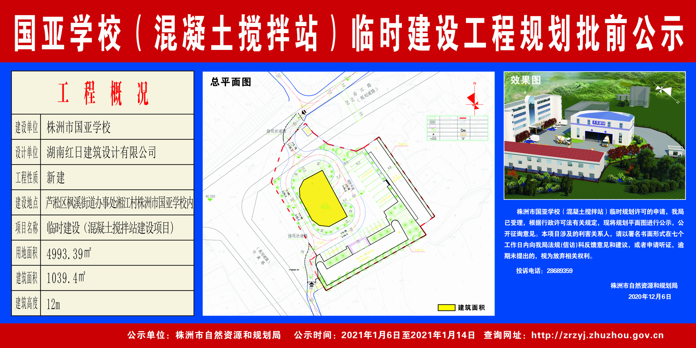 株洲市国亚学校(混凝土搅拌站)临时建设工程规划批前公示)