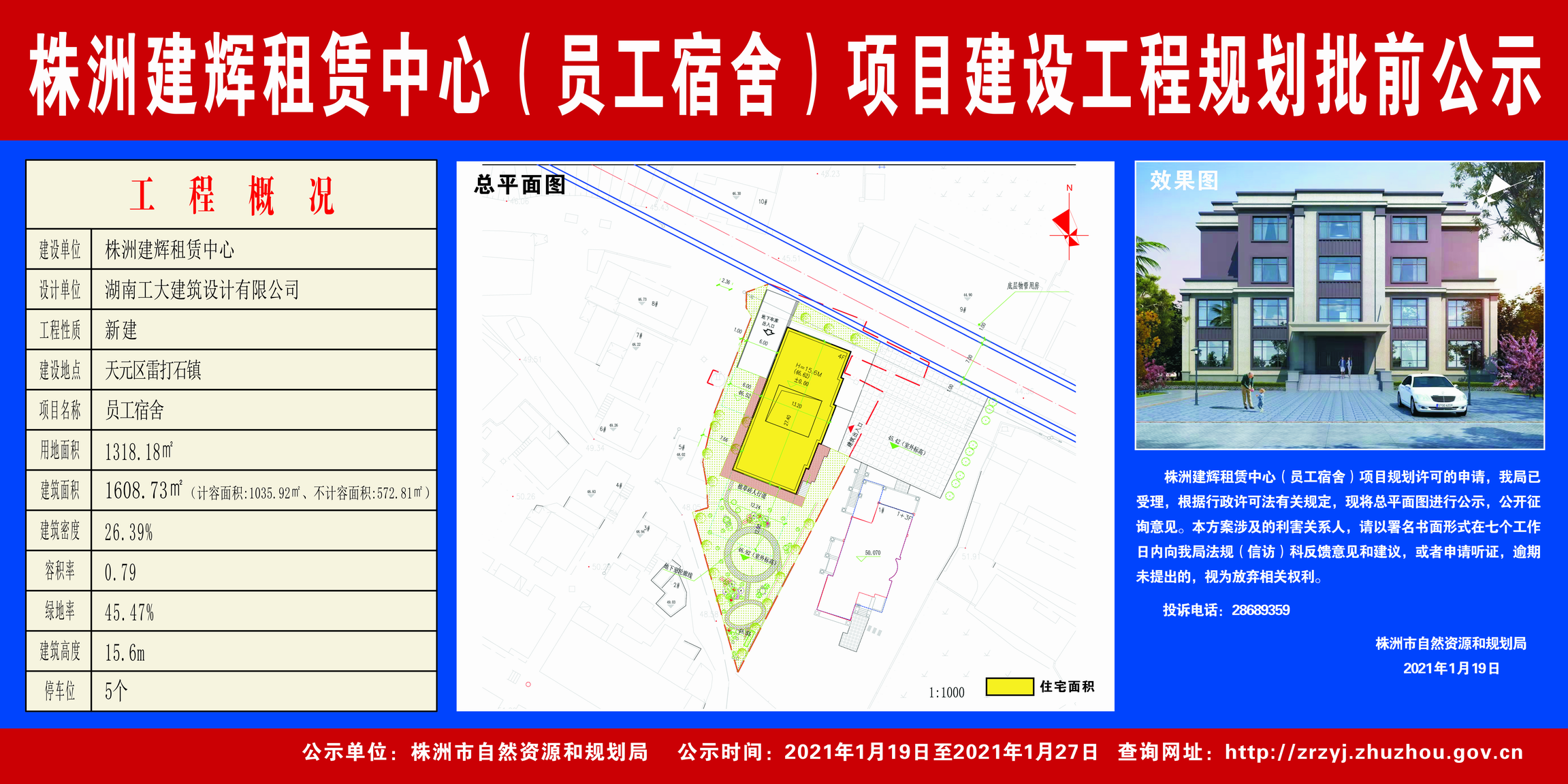 株洲建辉租赁中心(株洲建辉租赁中心(员工宿舍)项目建设工程规划批前公示)2