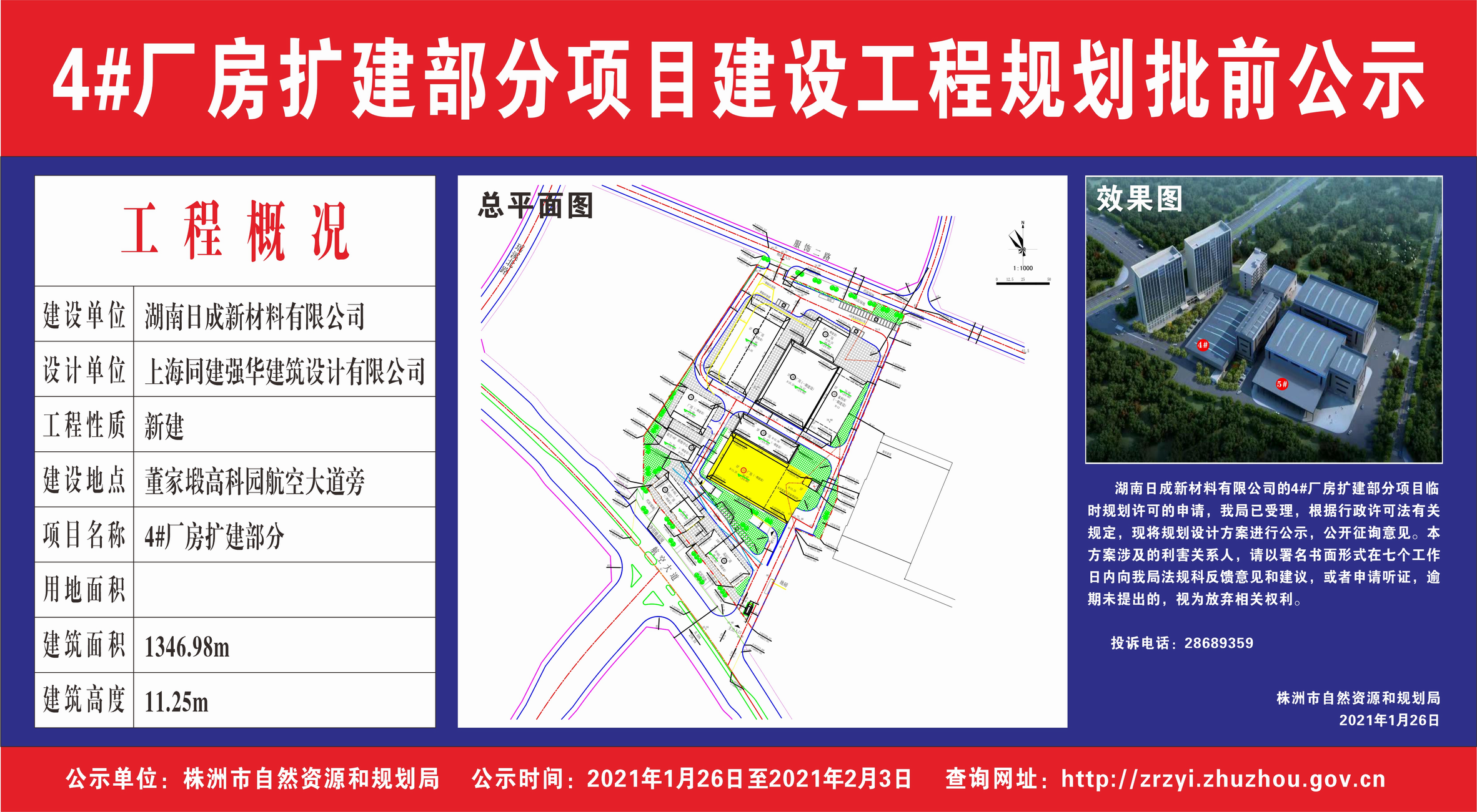 湖南日成新材料有限公司(绿色预拌砂浆和预拌混凝土生产项目4#项目建设工程规划批前公示2