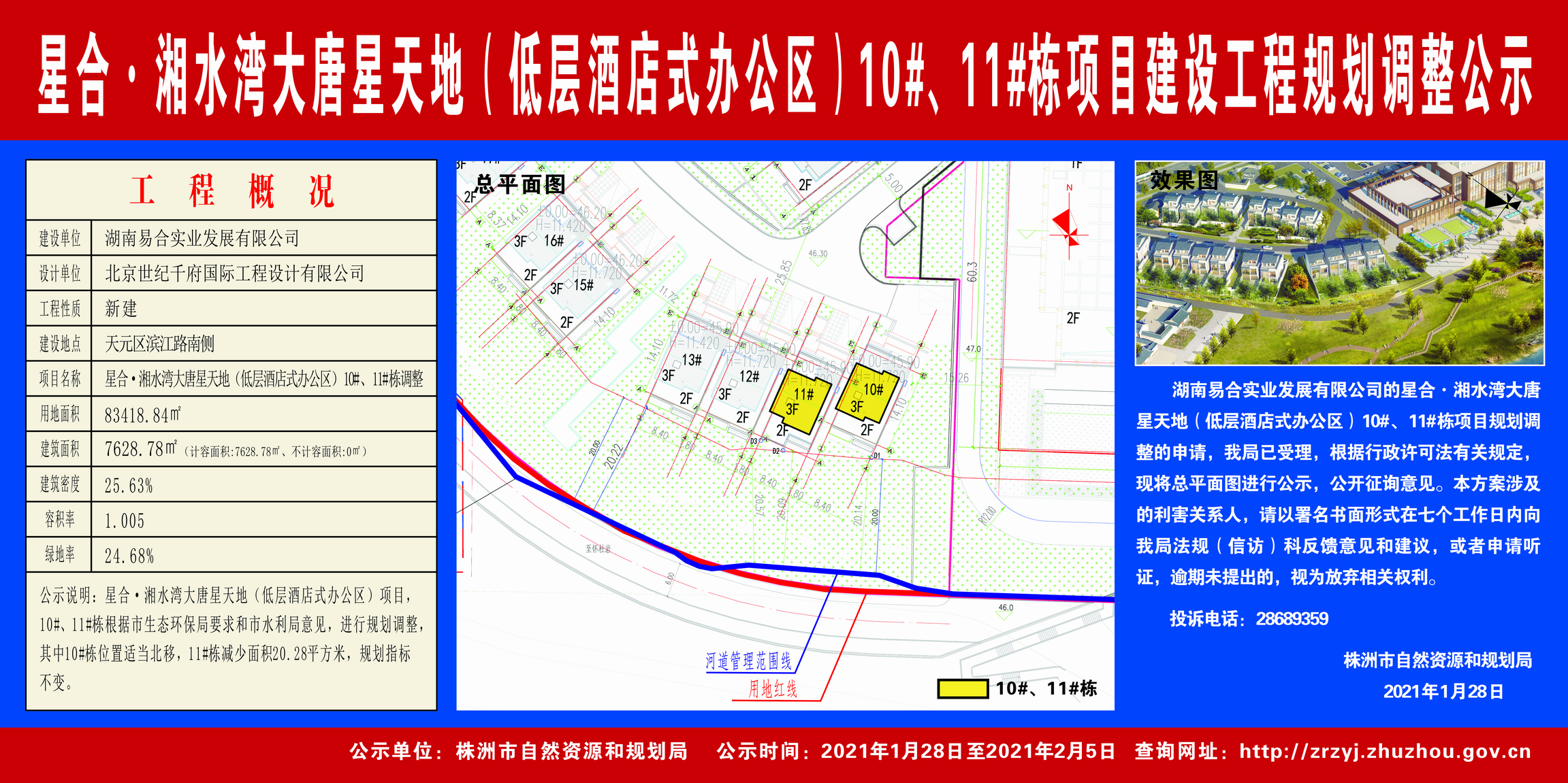 湖南易合实业发展有限公司(星合·湘水湾大唐星天地(低层酒店式办公区)10#、11#栋项目建设工程规划调整公示)2