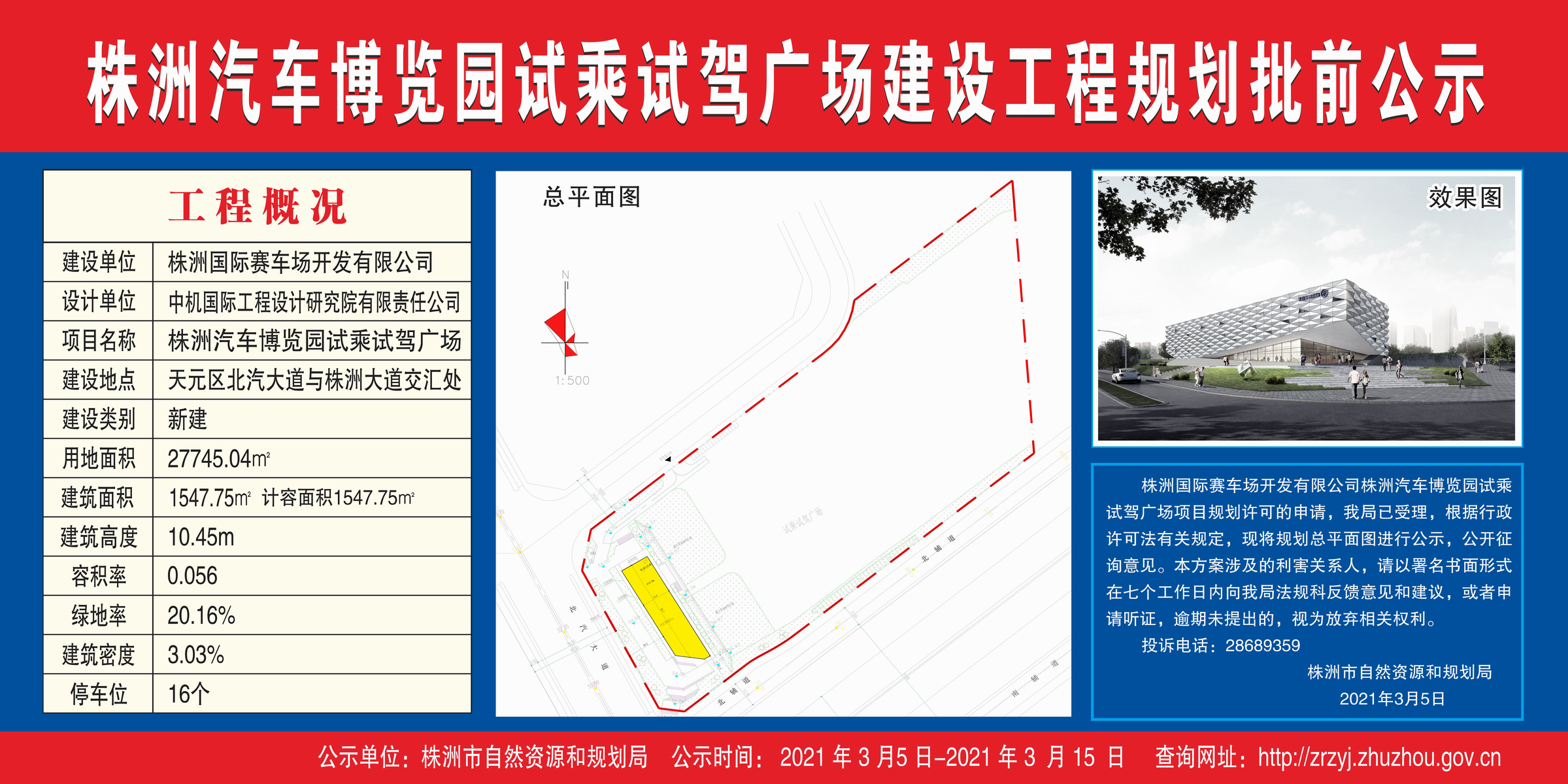 株洲国际赛车场开发有限公司(株洲汽车博览园试乘试驾广场建设工程规划批前公示)2