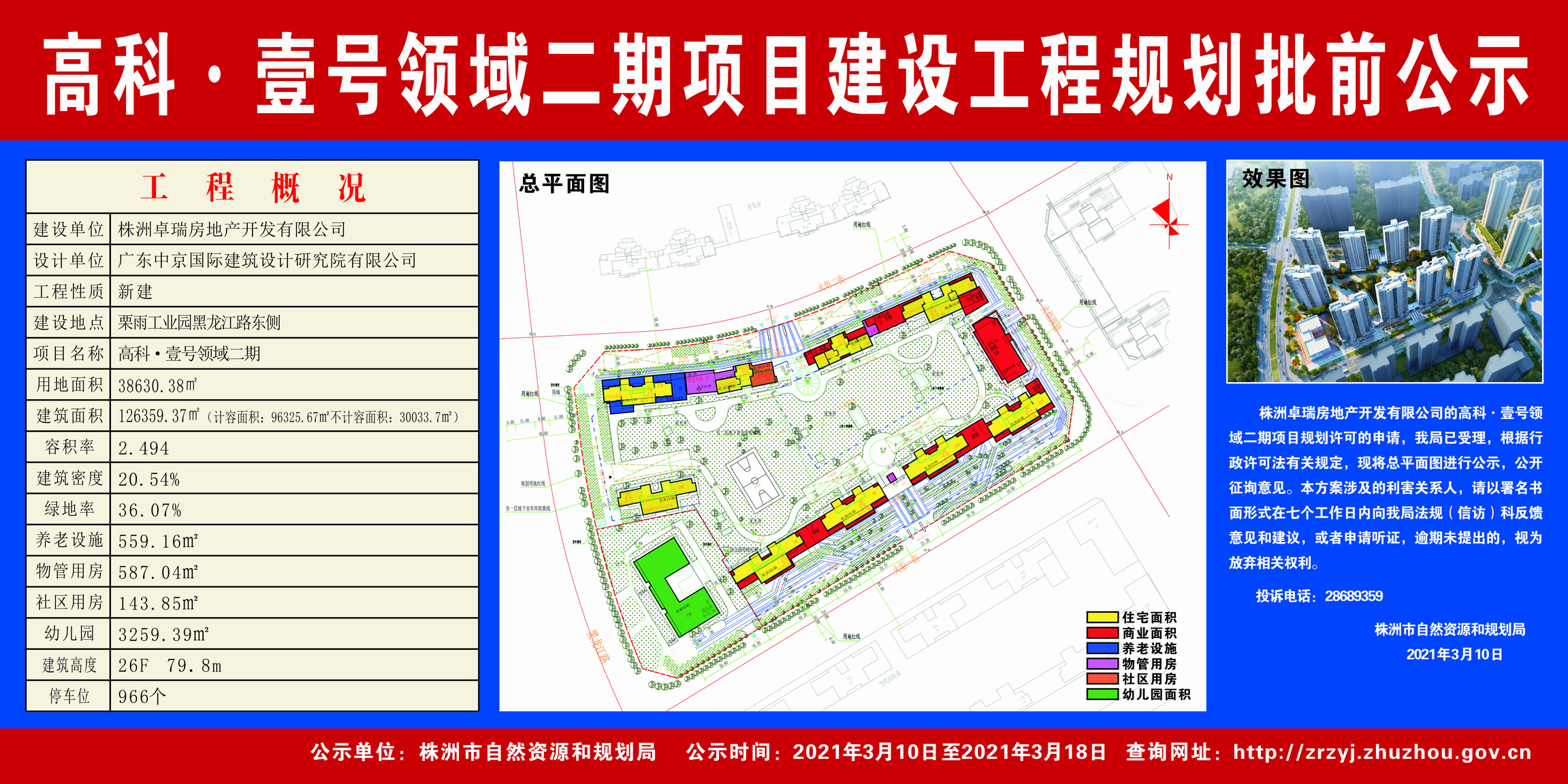 株洲卓瑞房地产开发有限公司(高科·壹号领域二期项目建设工程规划批前公示)2