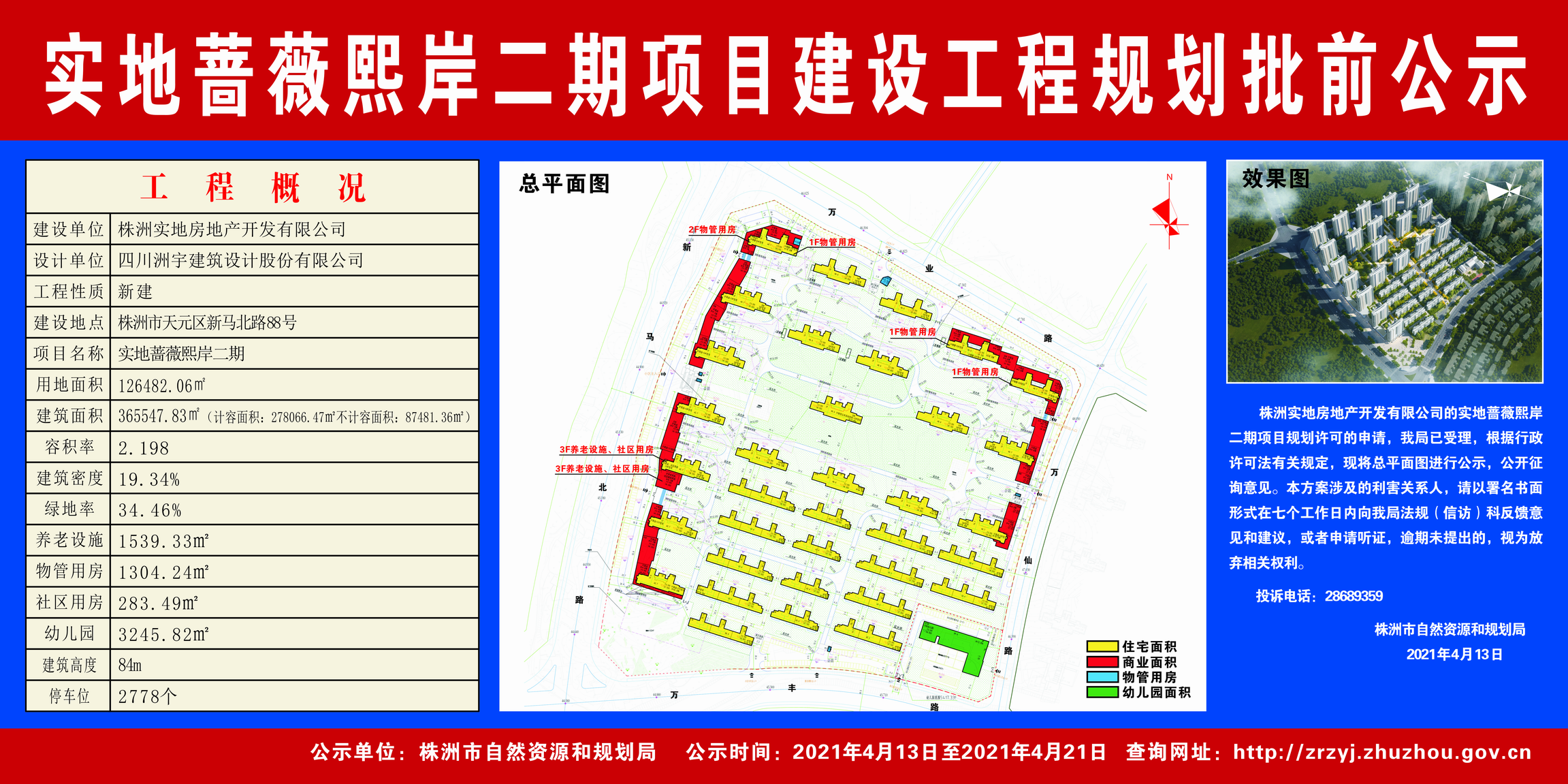 株洲实地房地产开发有限公司(实地蔷薇熙岸二期项目建设工程规划批前公示)2