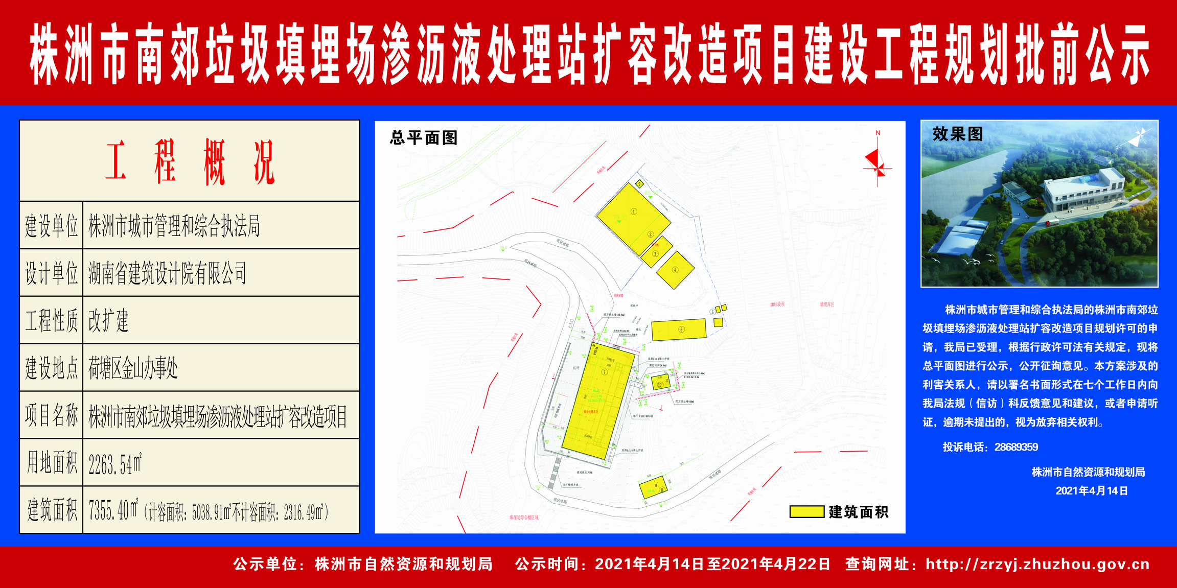 株洲市城市管理和综合执法局(南郊垃圾填埋场渗沥液处理站扩容改造项目建设工程规划批前公示)2