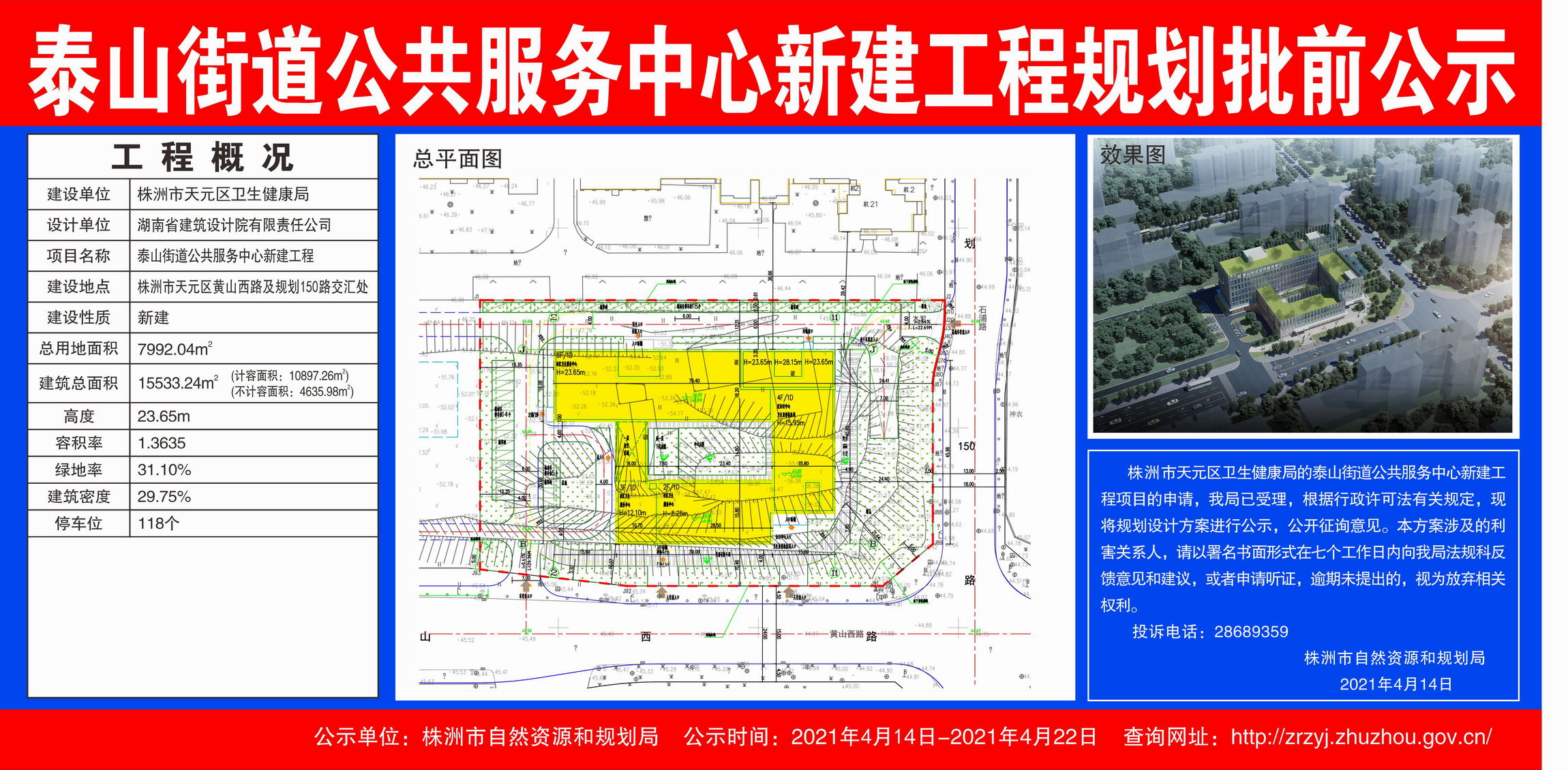 天元区卫生健康局-泰山街道公共服务中心新建工程建设工程规划批前公示)2