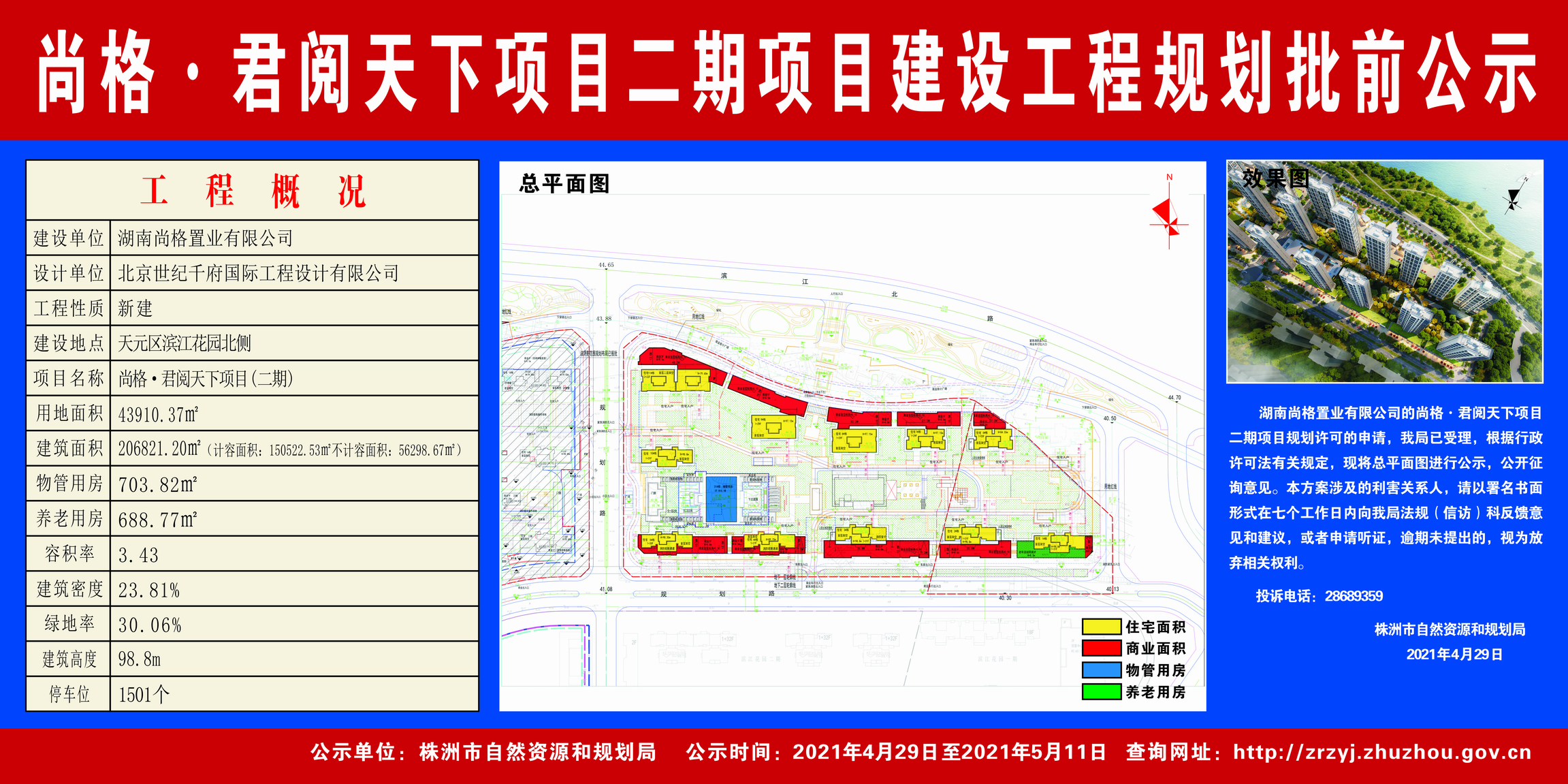 湖南尚格置业有限公司(尚格·君阅天下项目二期项目建设工程规划批前公示)2