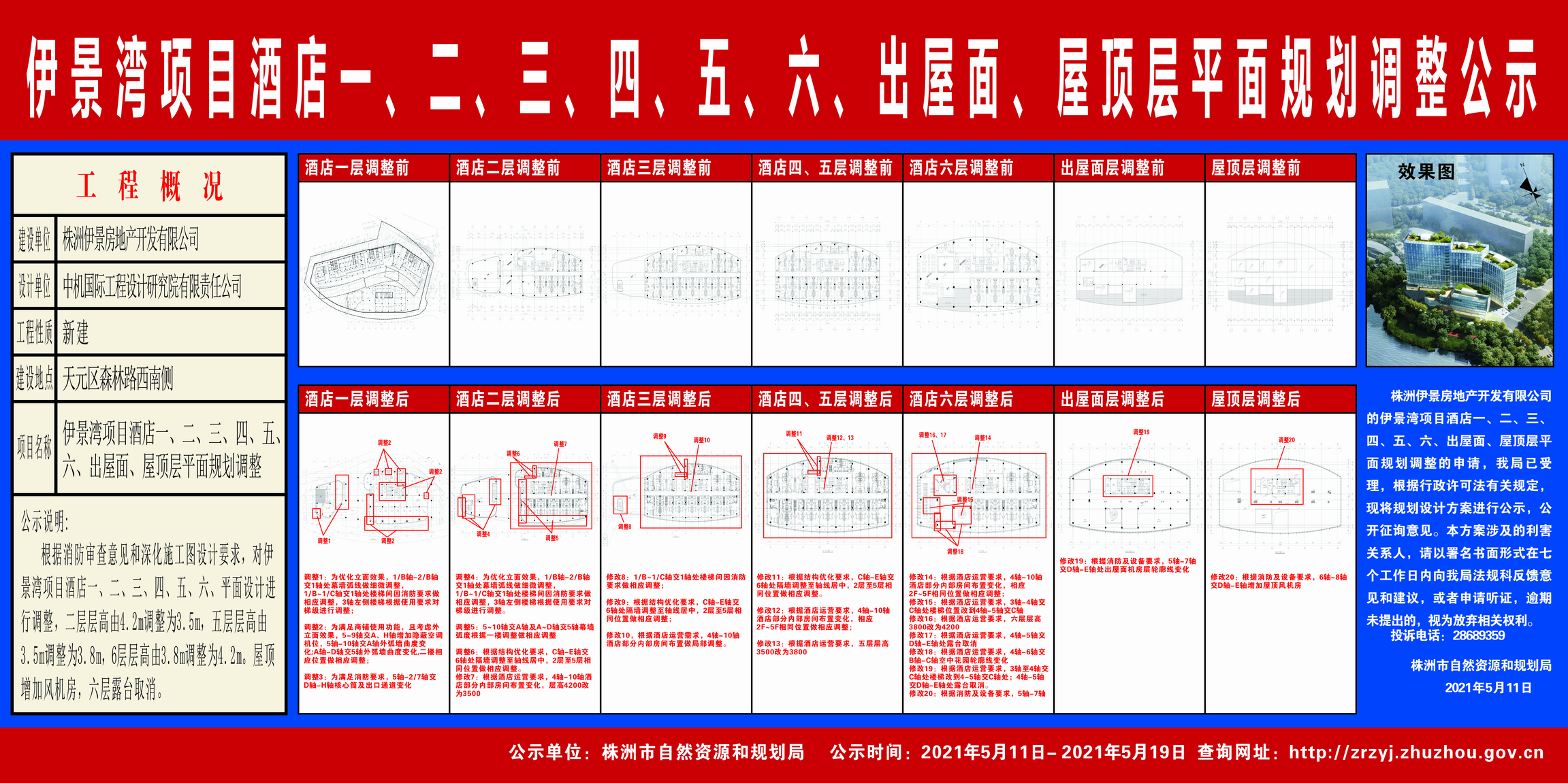 株洲伊景房地产开发有限公司(伊景湾项目酒店一、二、三、四、五、六、出屋面、屋顶层平面规划调整公示)2