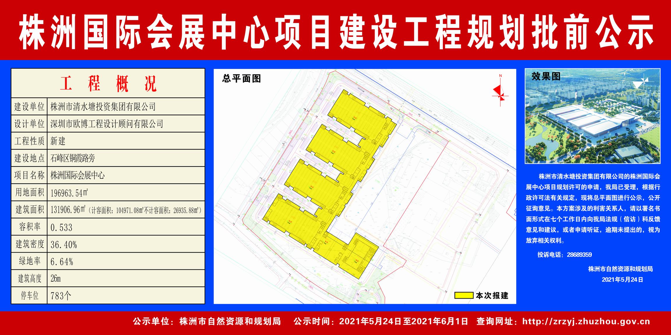 株洲市清水塘投资集团有限公司(株洲国际会展中心项目建设工程规划批前公示)2