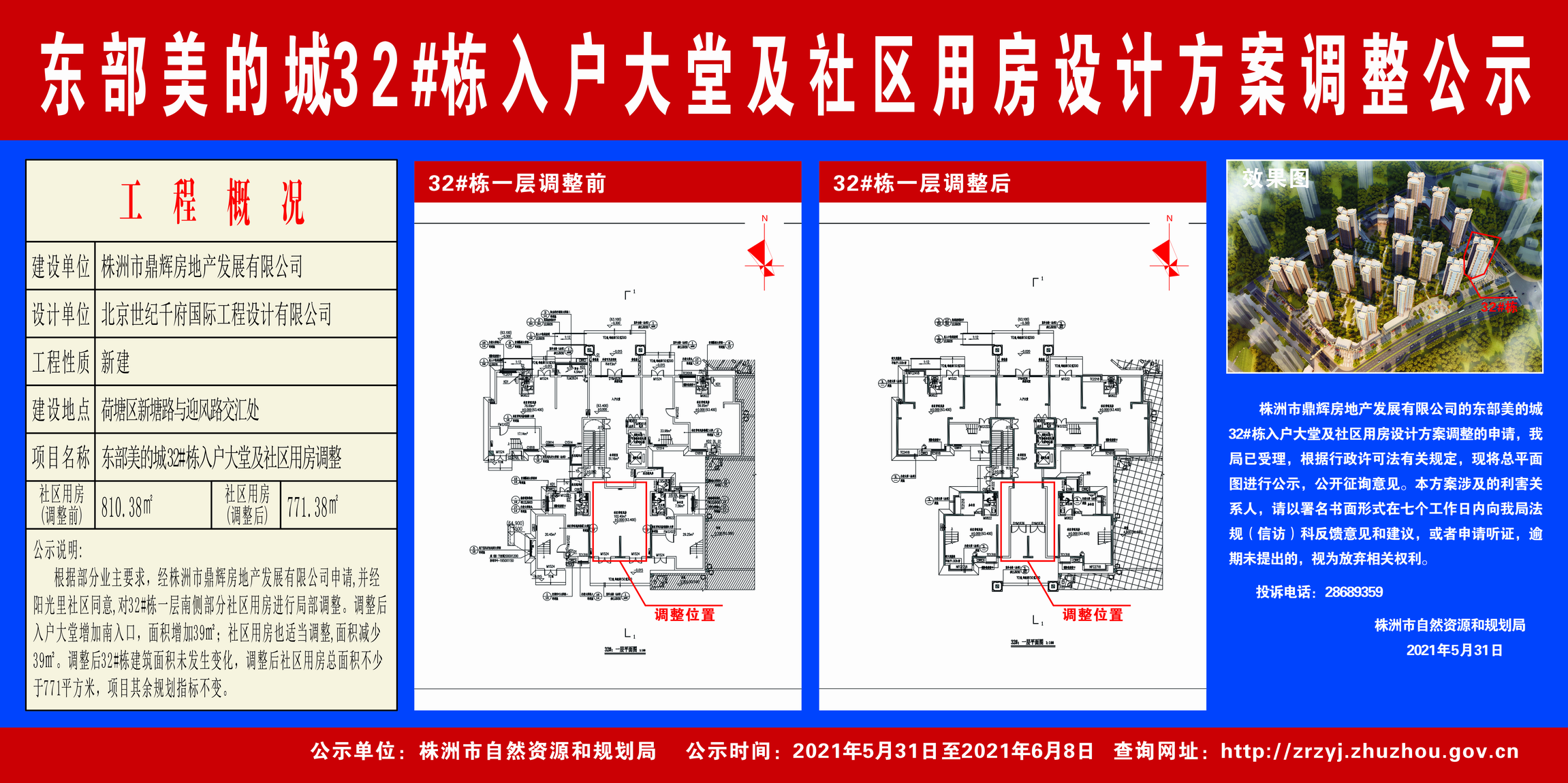 株洲市鼎辉房地产发展有限公司(东部美的城32#栋入户大堂及社区用房设计方案调整公示)2