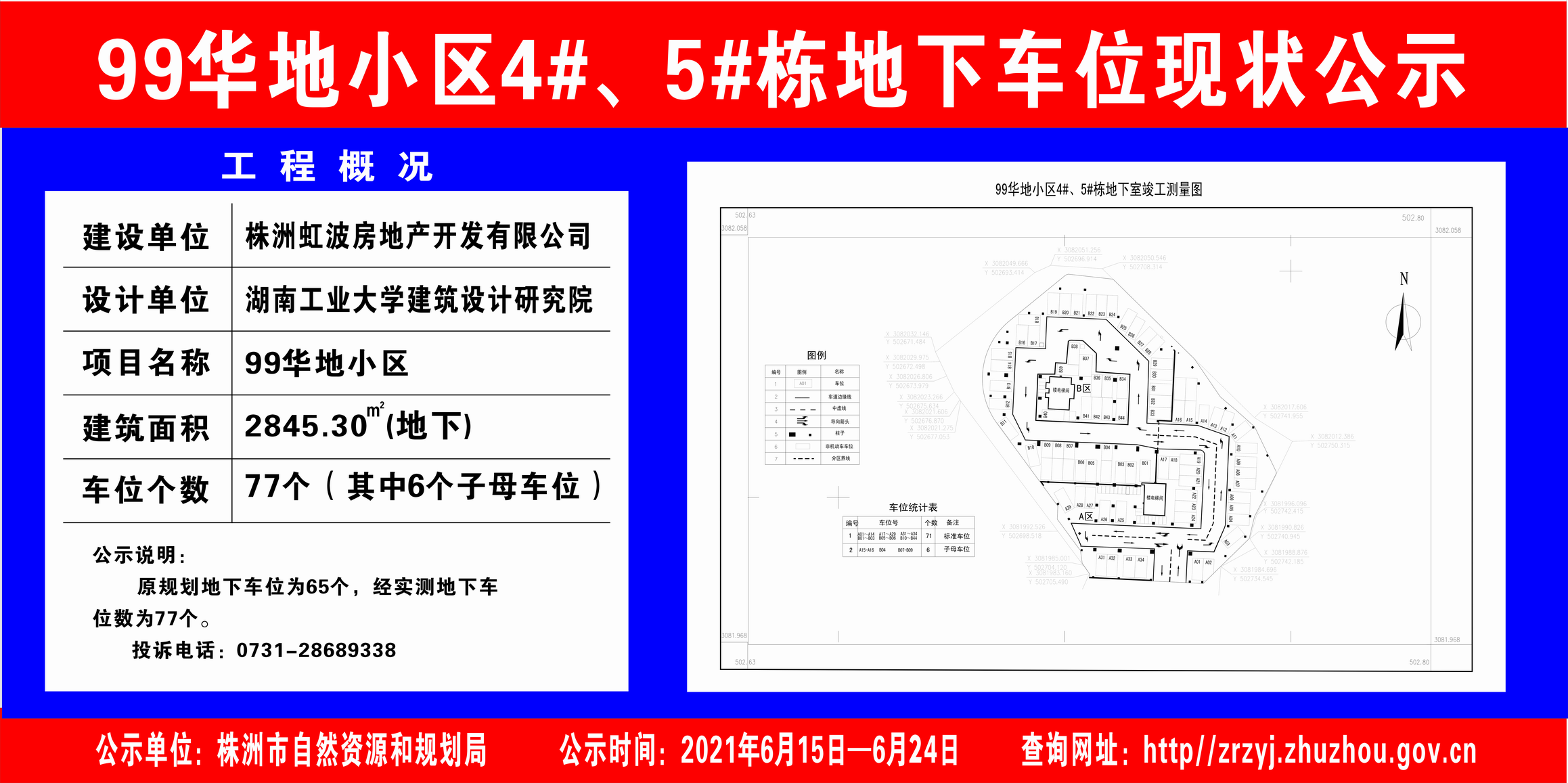 株洲虹波房地产开发有限公司(99华地小区4#、5#栋地下车位现状公示)2
