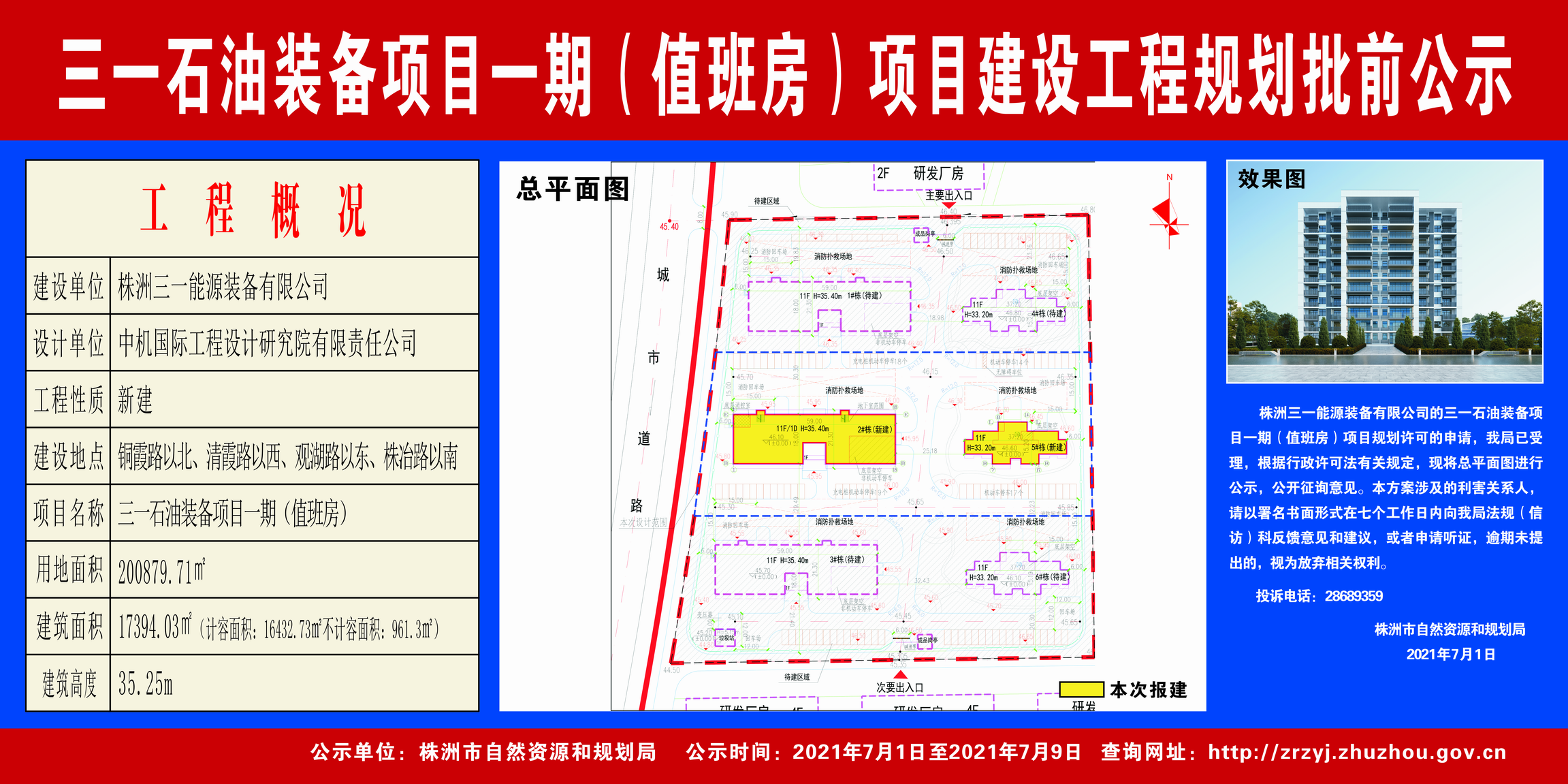 株洲三一能源装备有限公司(三一石油装备项目一期(值班房)项目建设工程规划批前公示)2