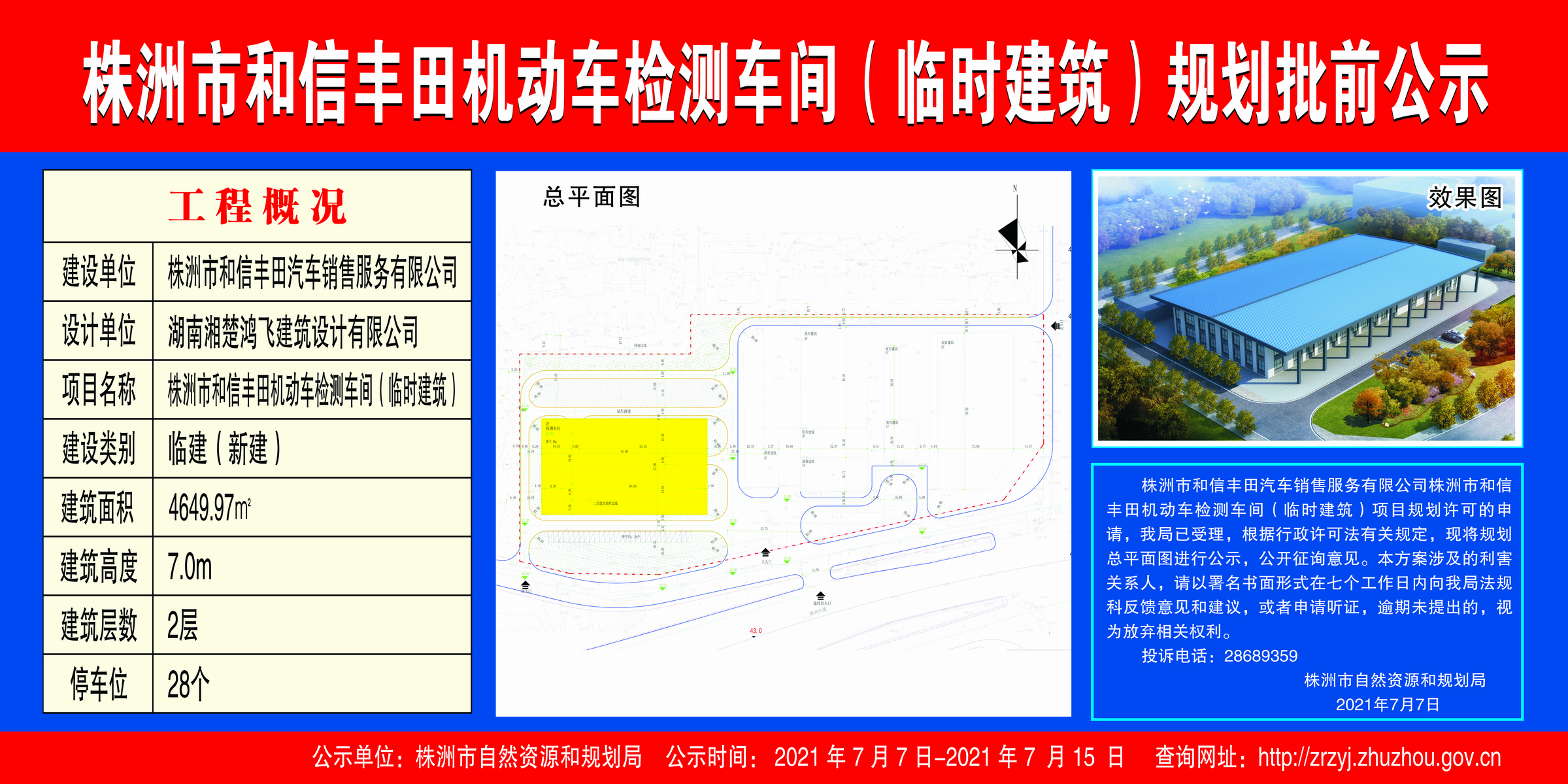 株洲市和信丰田汽车销售服务有限公司[株洲市和信丰田机动车检测车间(临时建筑)]2