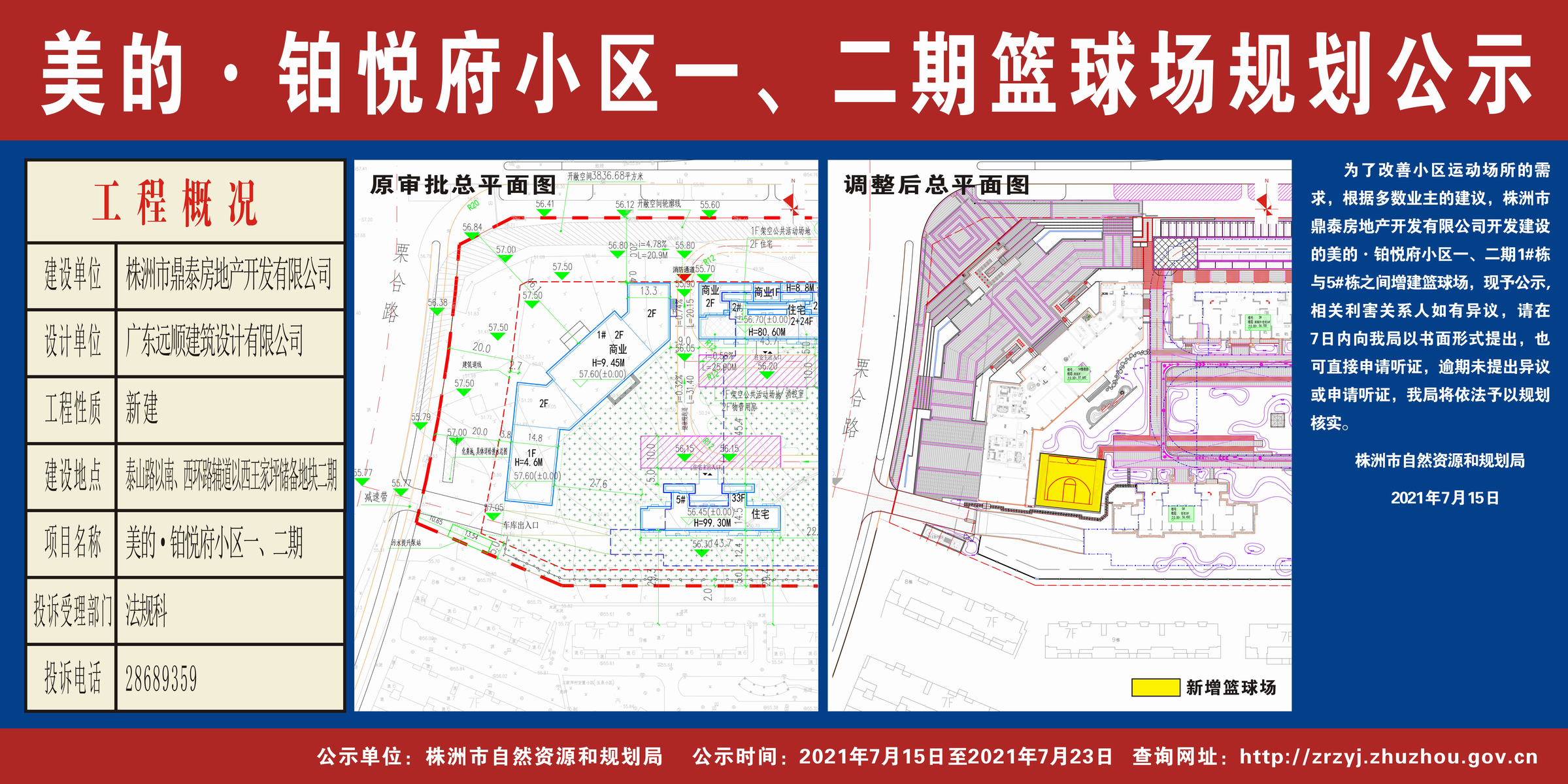 株洲市鼎泰房地产开发有限公司(美的·铂悦府小区一、二期篮球场规划公示)2