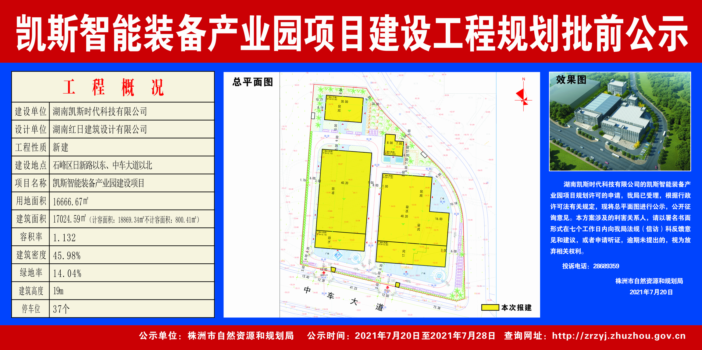 湖南凯斯时代科技有限公司(凯斯智能装备产业园项目建设工程规划批前公示)2