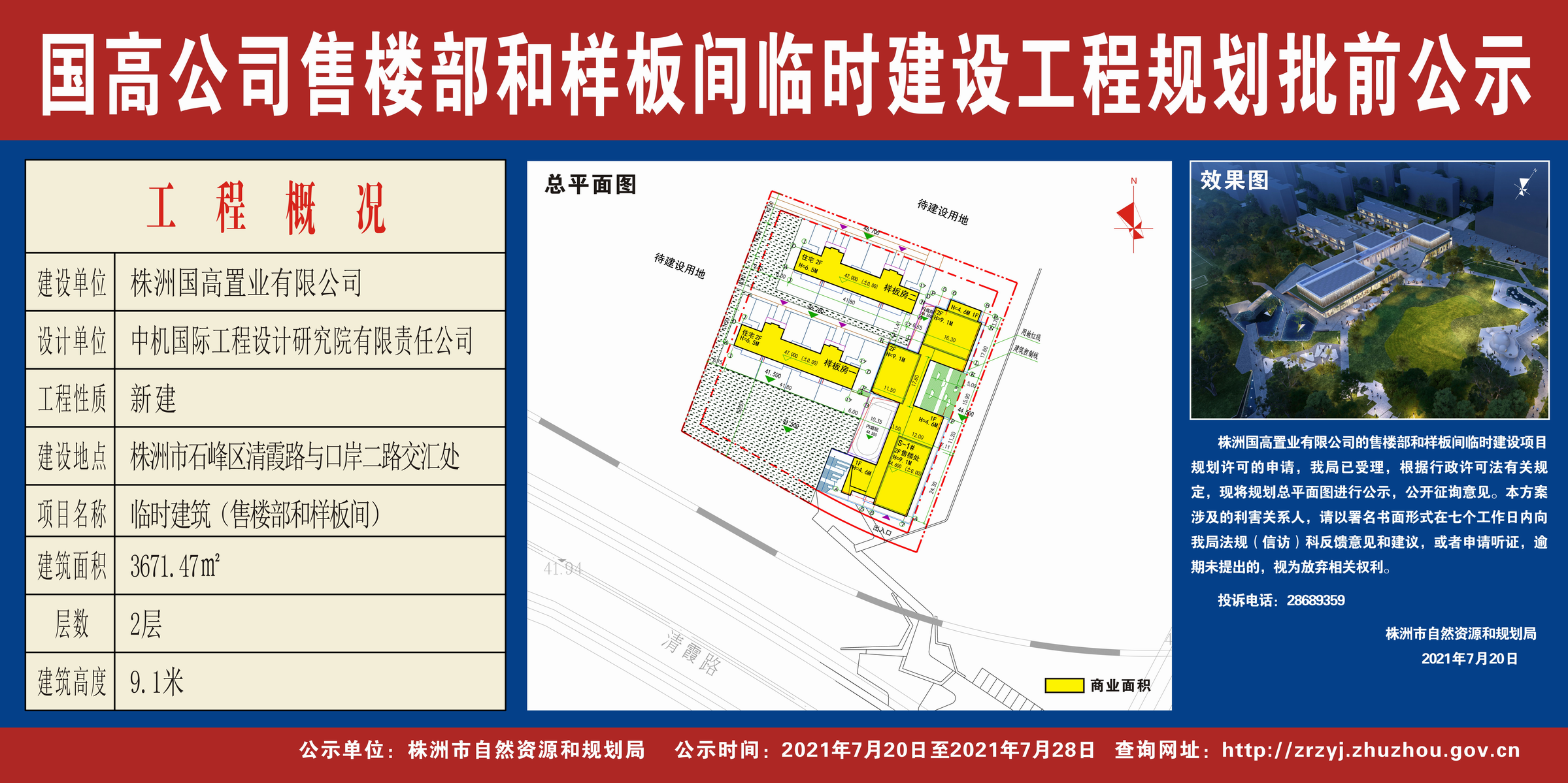 株洲国高置业有限公司(国高公司售楼部和样板间临时建设工程规划批前公示)2