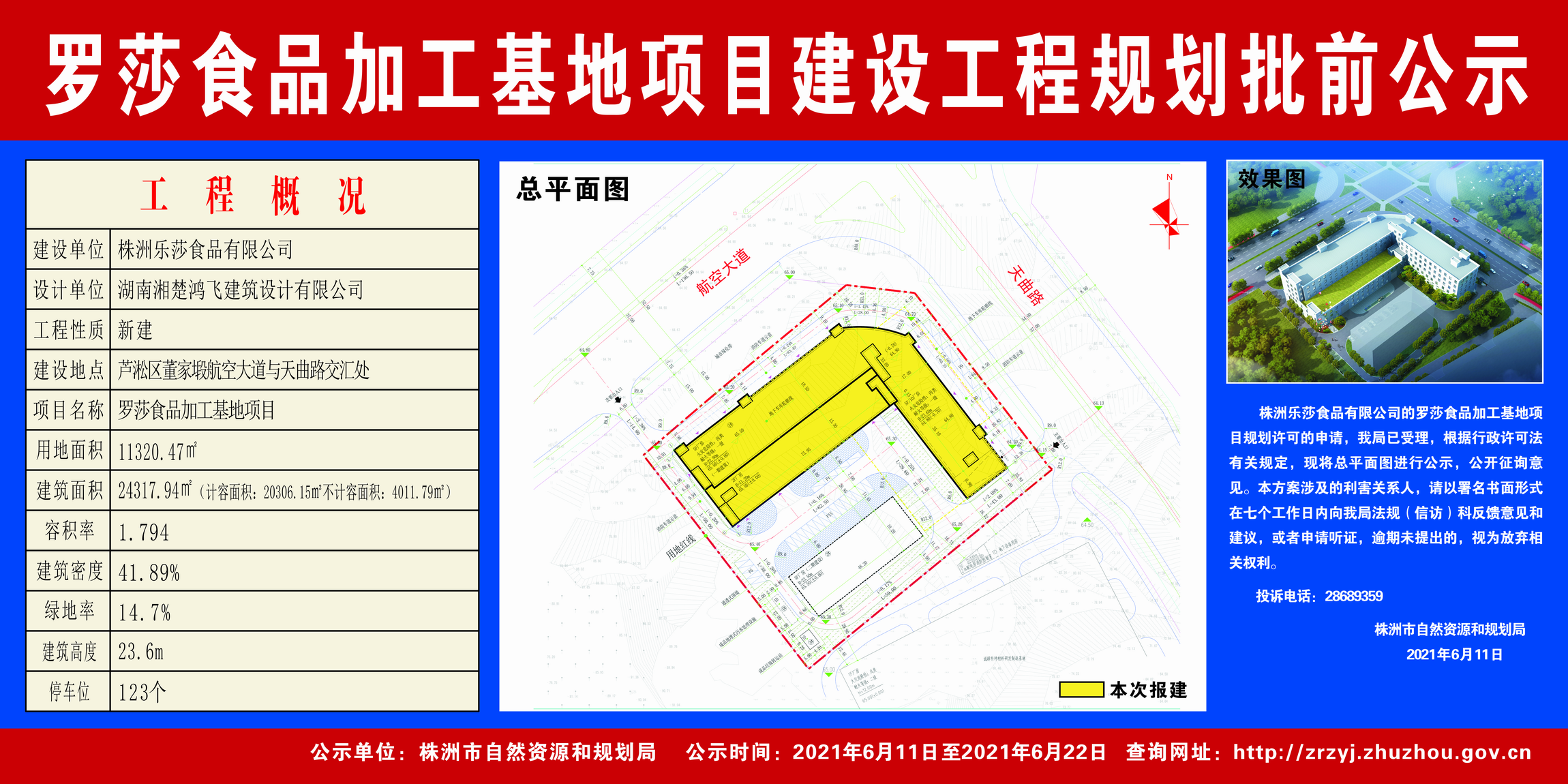 株洲乐莎食品有限公司(罗莎食品加工基地项目建设工程规划批前公示)