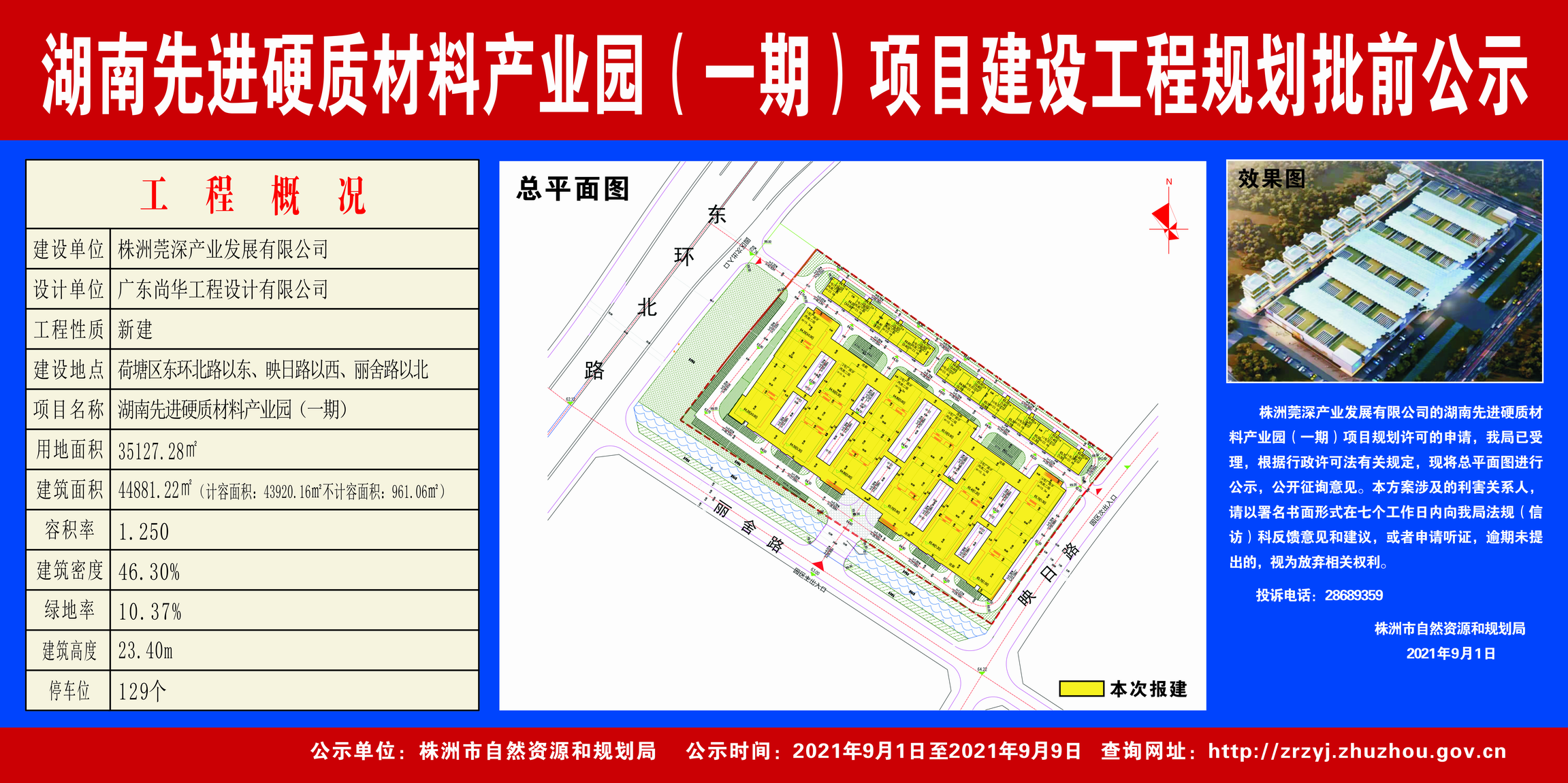 株洲莞深产业发展有限公司(湖南先进硬质材料产业园(一期)项目建设工程规划批前公示)2