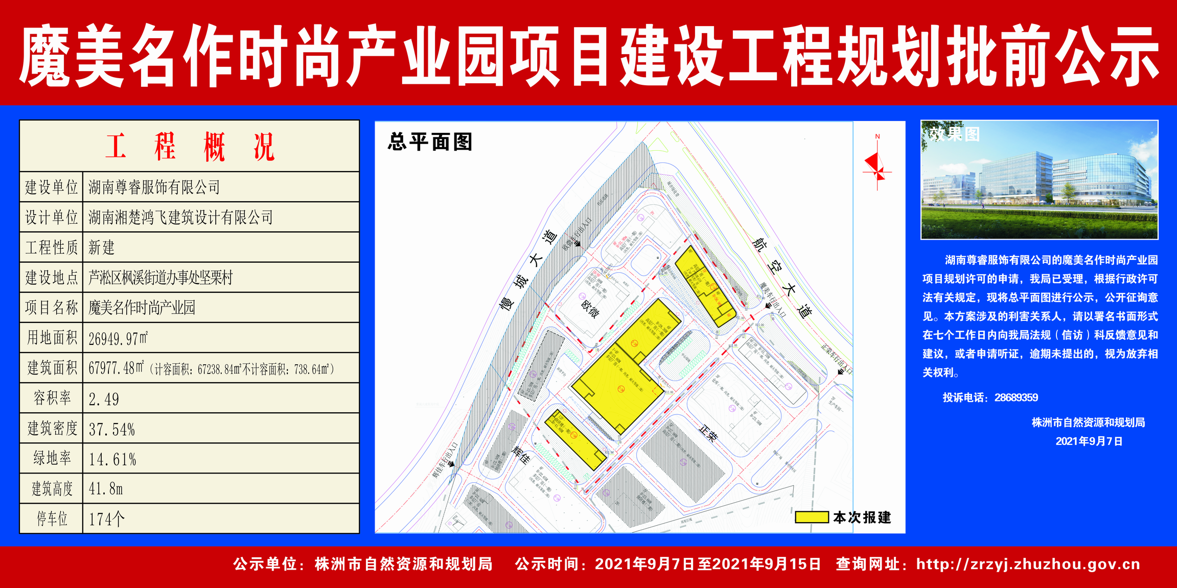 湖南尊睿服饰有限公司(魔美名作时尚产业园项目建设工程规划批前公示)2