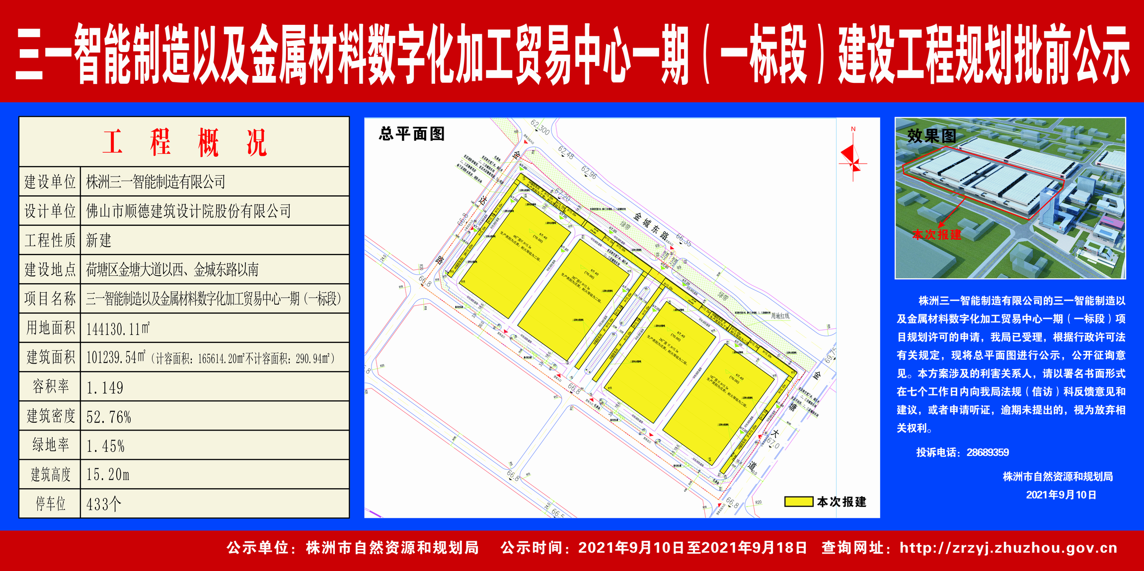 株洲三一智能制造有限公司(三一智能制造以及金属材料数字化加工贸易中心一期(一标段)项目建设工程规划批前公示)2