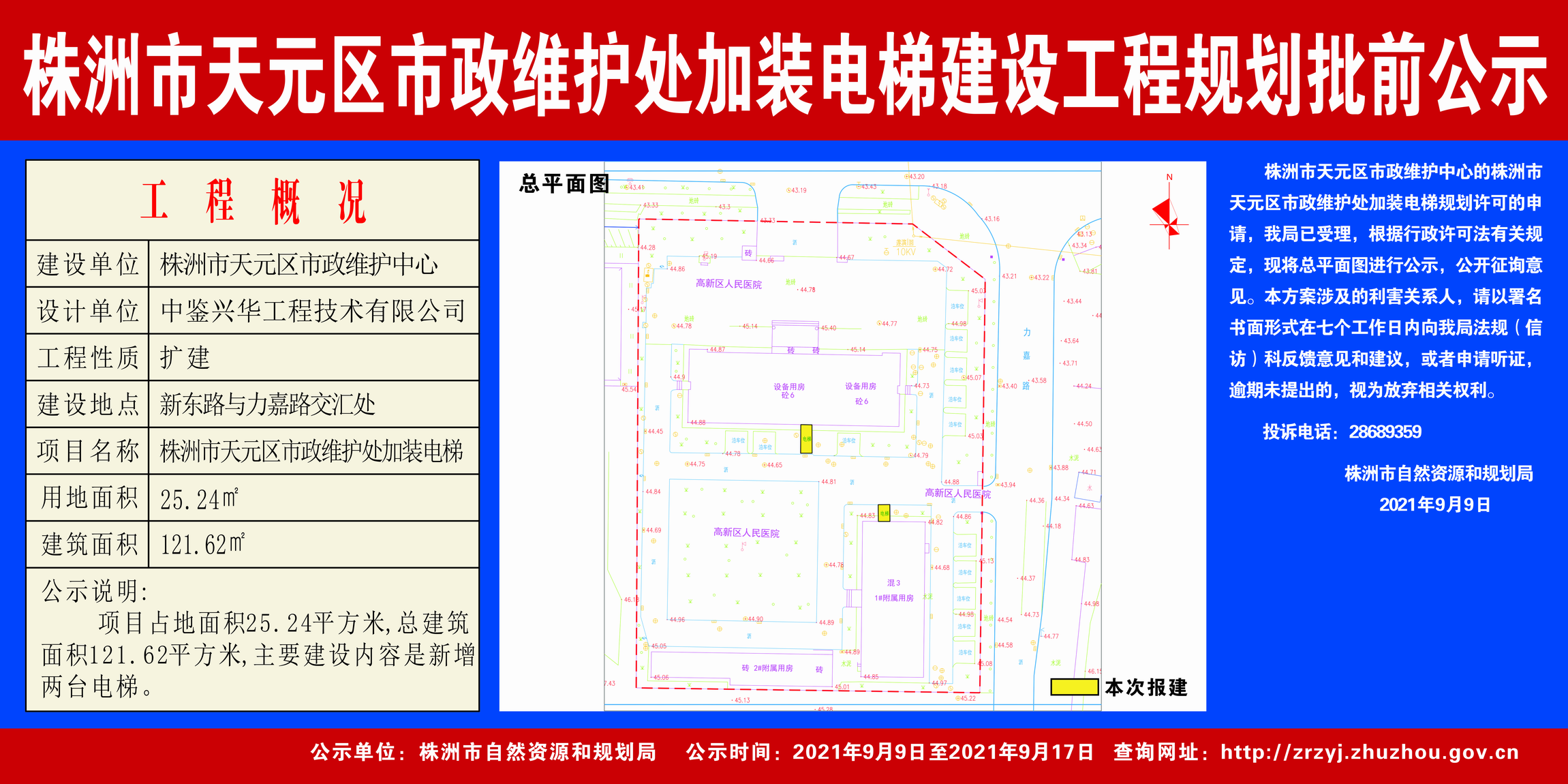 株洲市天元区市政维护中心(株洲市天元区市政维护处加装电梯建设工程规划批前公示)2