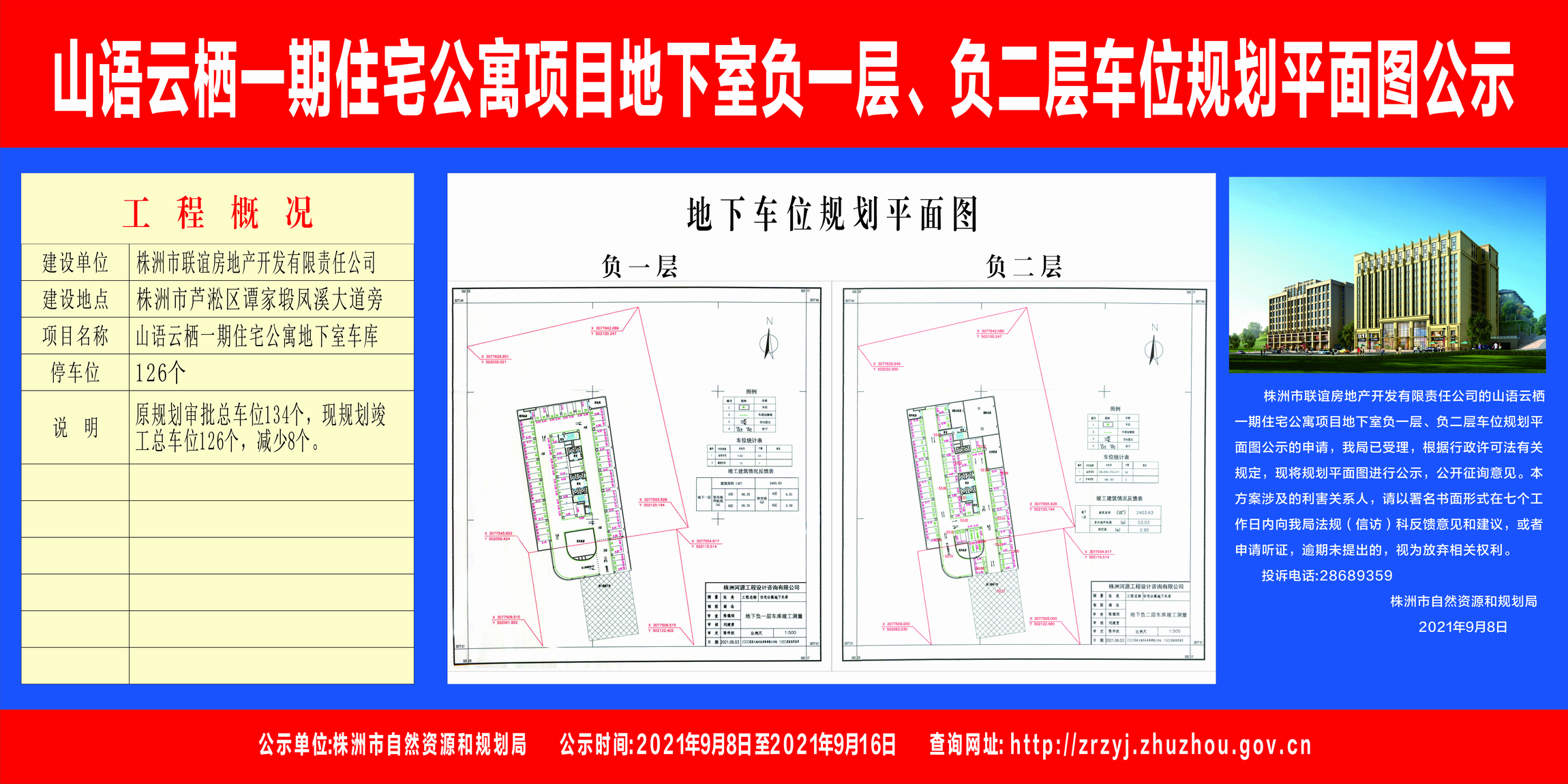 株洲市联谊房地产开发有限责任公司(山语云栖一期住宅公寓项目地下室负一层、负二层车位规划)2