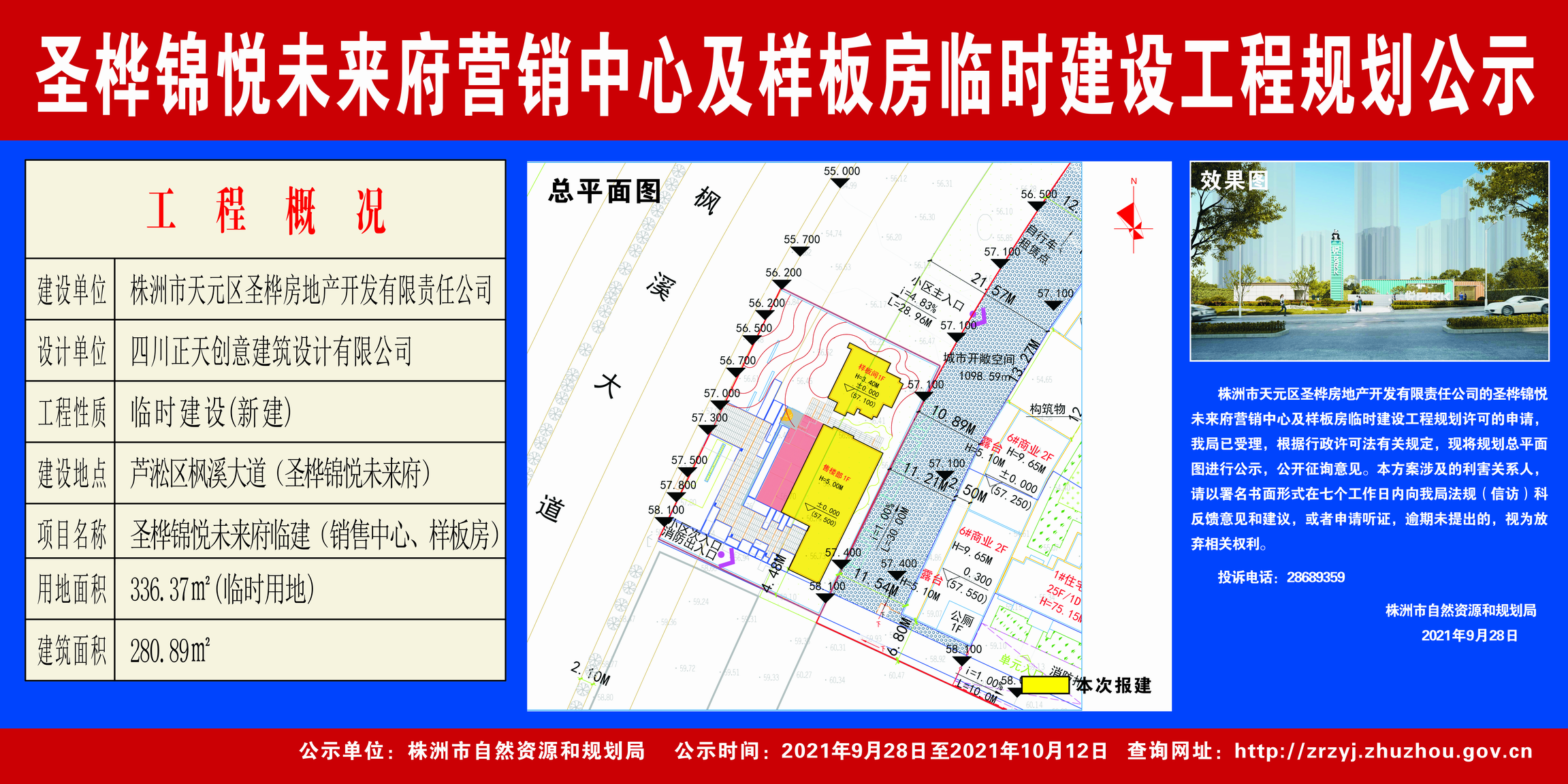 株洲市天元区圣桦房地产开发有限责任公司(圣桦锦悦未来府营销中心及样板房临时建设公示)2