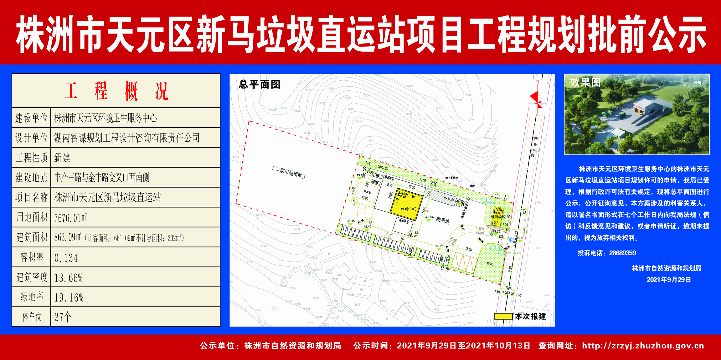 株洲市天元区环境卫生服务中心(株洲市天元区新马垃圾直运站项目工程规划批前公示)2