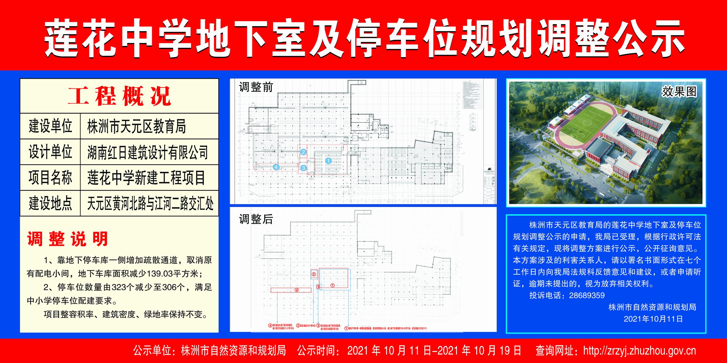 株洲市天元区教育局(莲花中学地下室及停车位规划调整公示)2