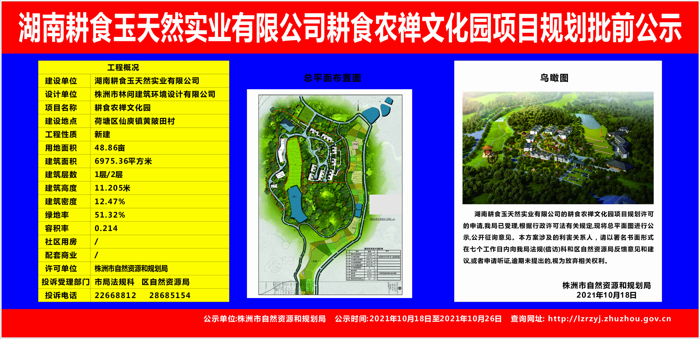 湖南耕食玉天然实业有限公司(耕食农禅文化园项目规划批前公示)2
