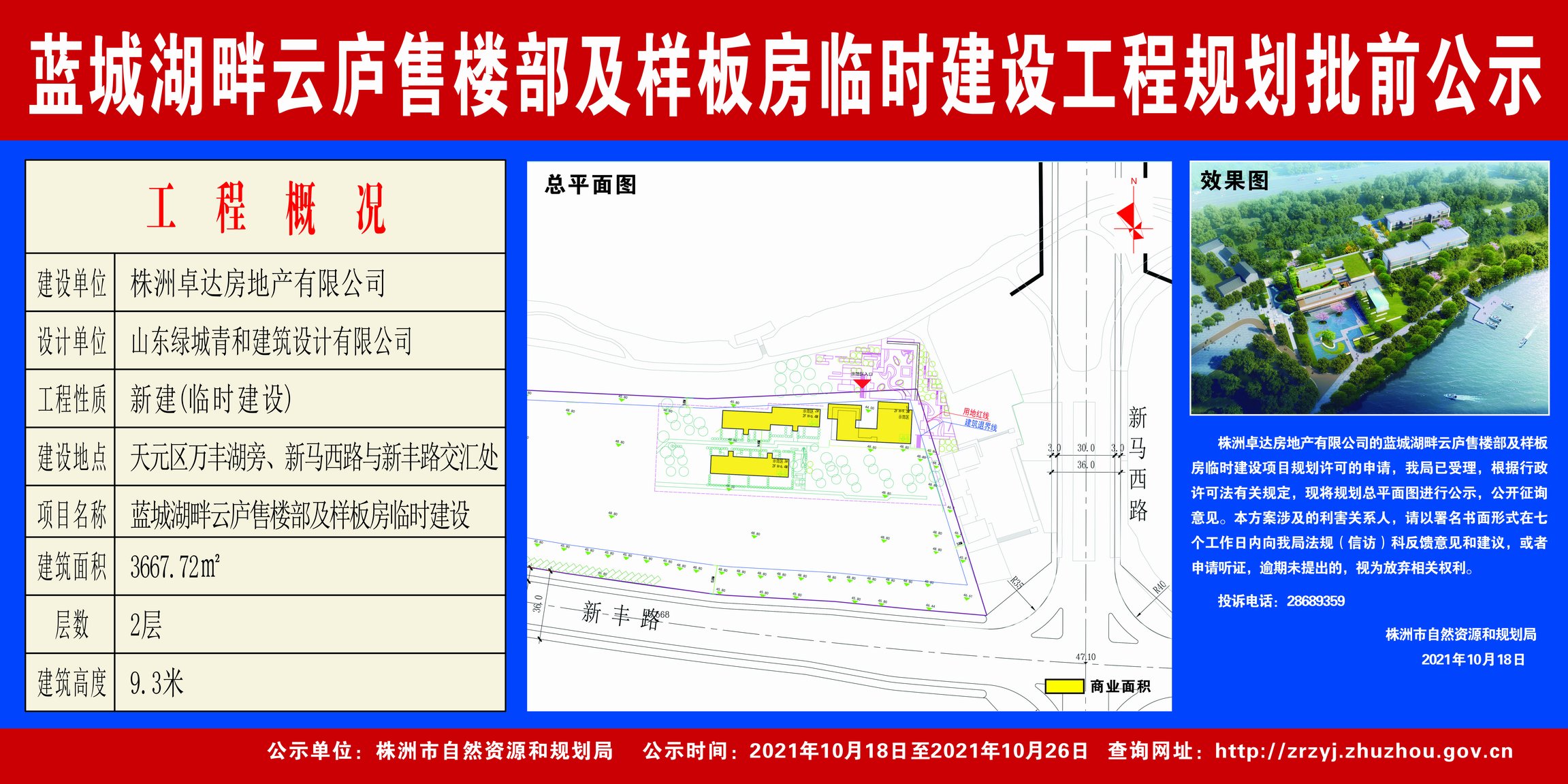 株洲卓达房地产有限公司(蓝城湖畔云庐售楼部及样板房临时建设工程规划批前公示)2