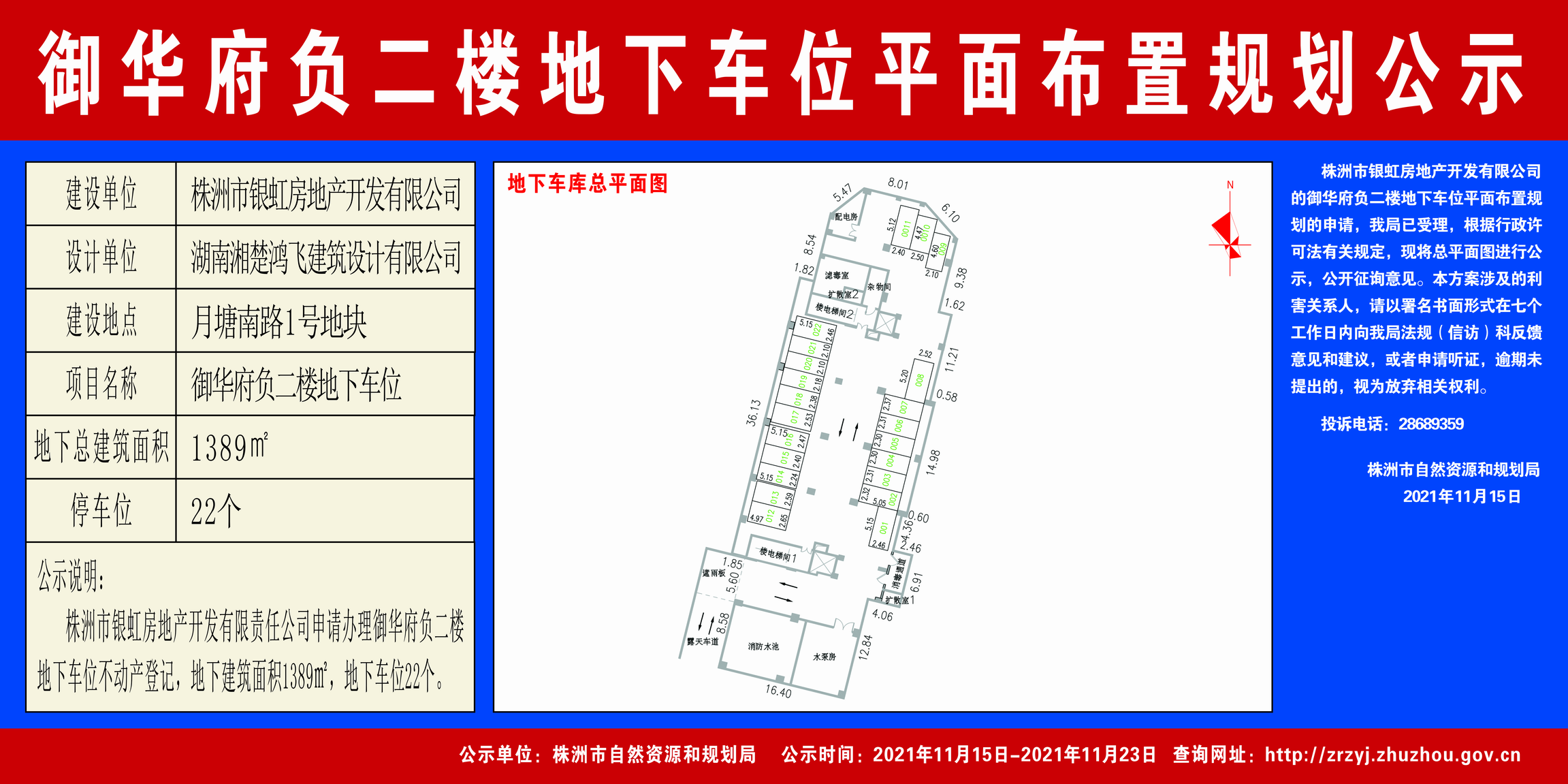 株洲市银虹房地产开发有限公司(御华府负二楼地下室车位平面布置规划公示)2