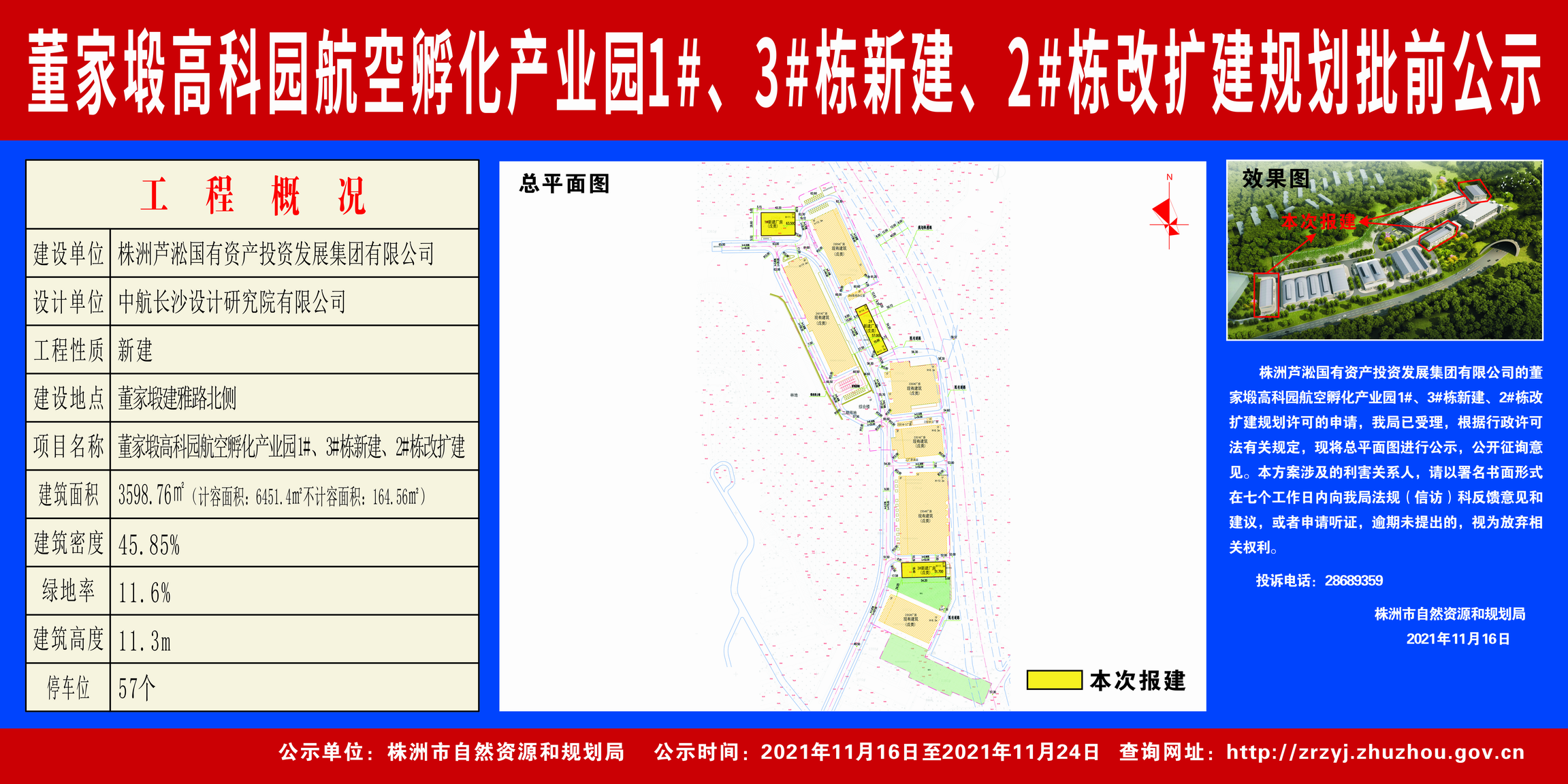 株洲芦淞国有资产投资发展集团有限公司(董家塅高科园航空孵化产业园1#、3#栋新建、2#栋改扩建规划批前公示)2