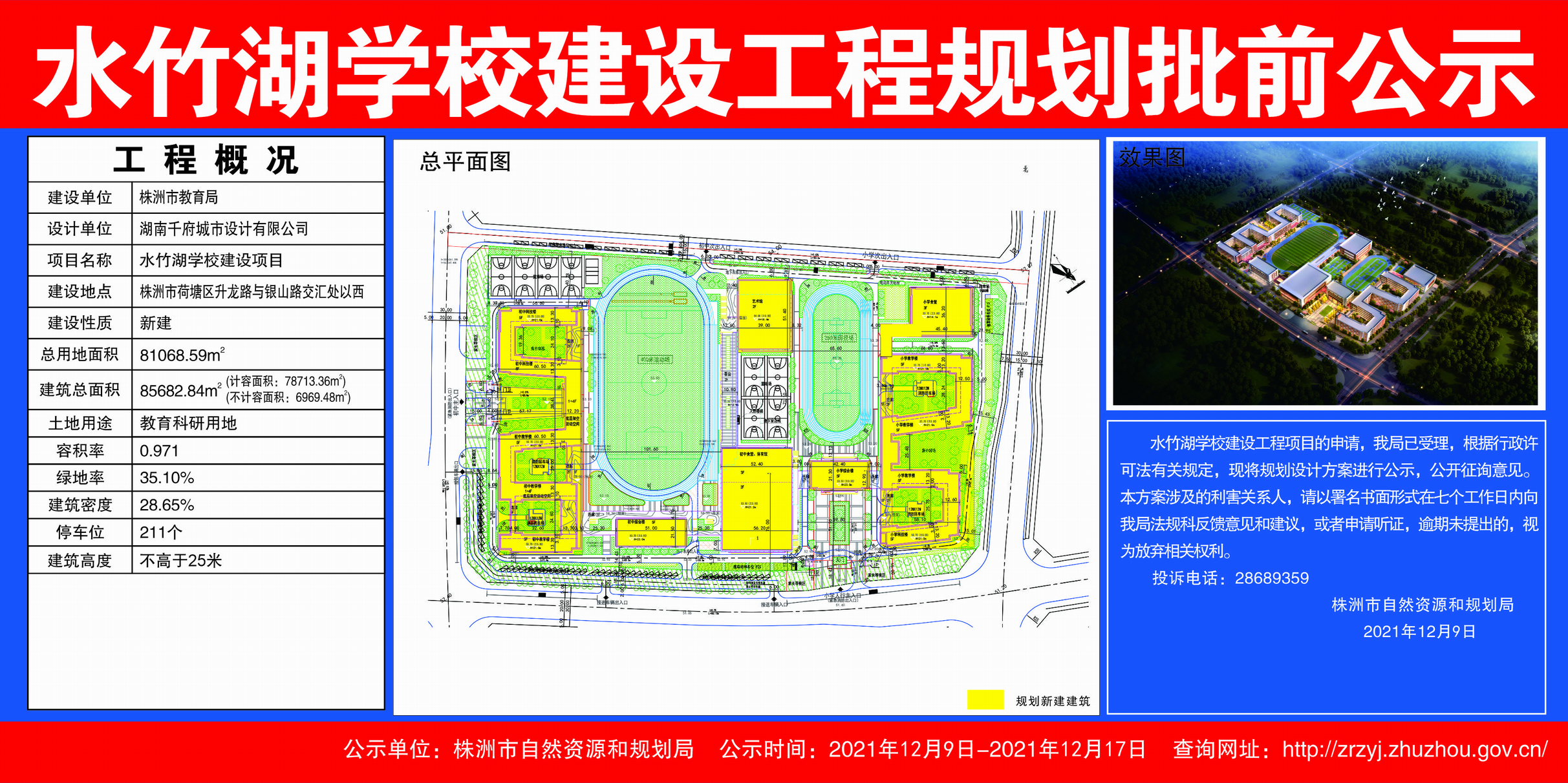 株洲市教育局水竹湖学校建设工程规划批前公示