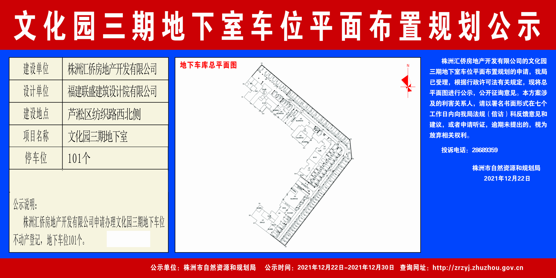 株洲汇侨房地产开发有限公司(文化园三期地下室车位平面布置规划公示)