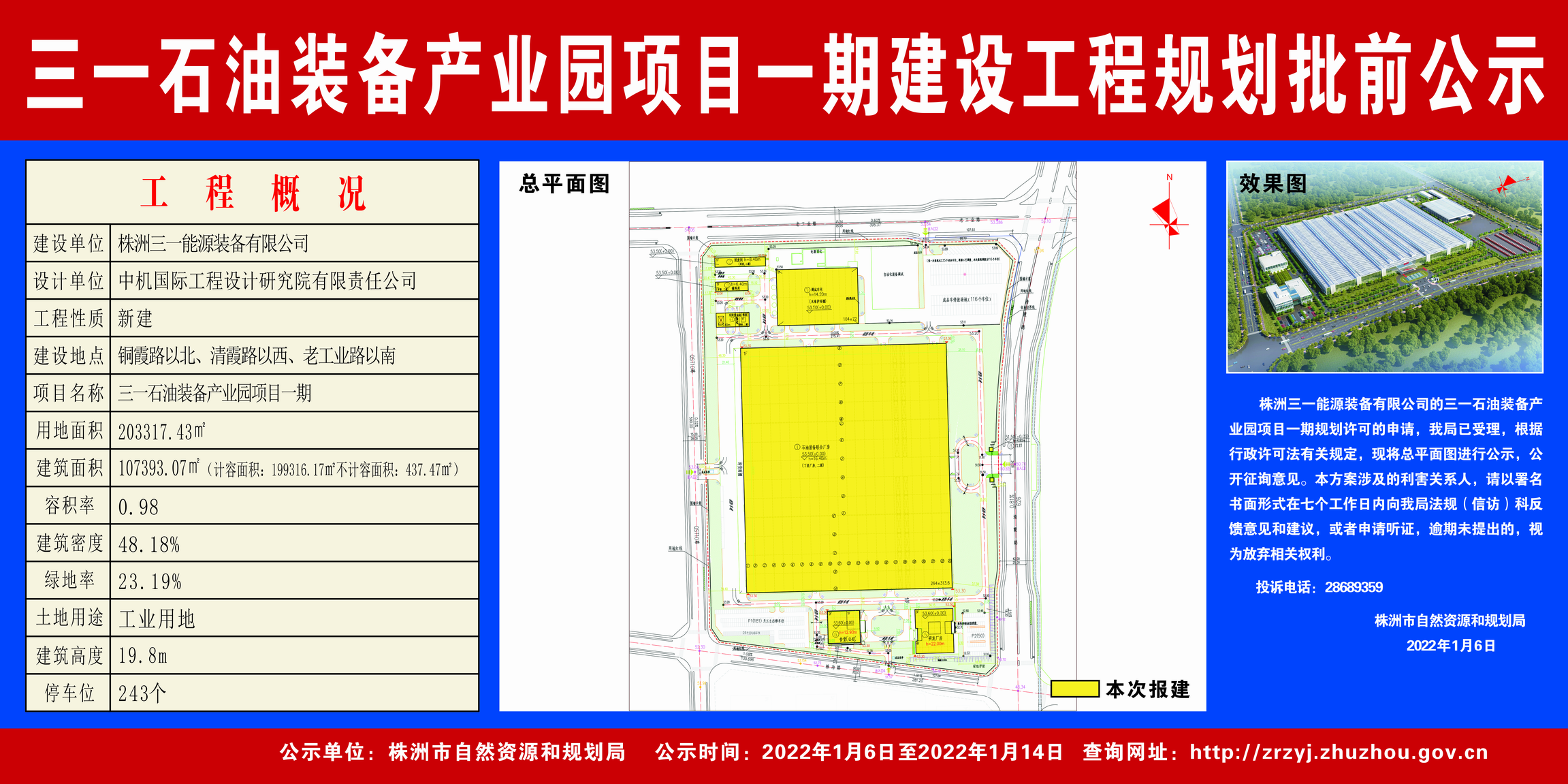株洲三一能源装备有限公司(三一石油装备产业园项目一期建设工程规划批前公示)2