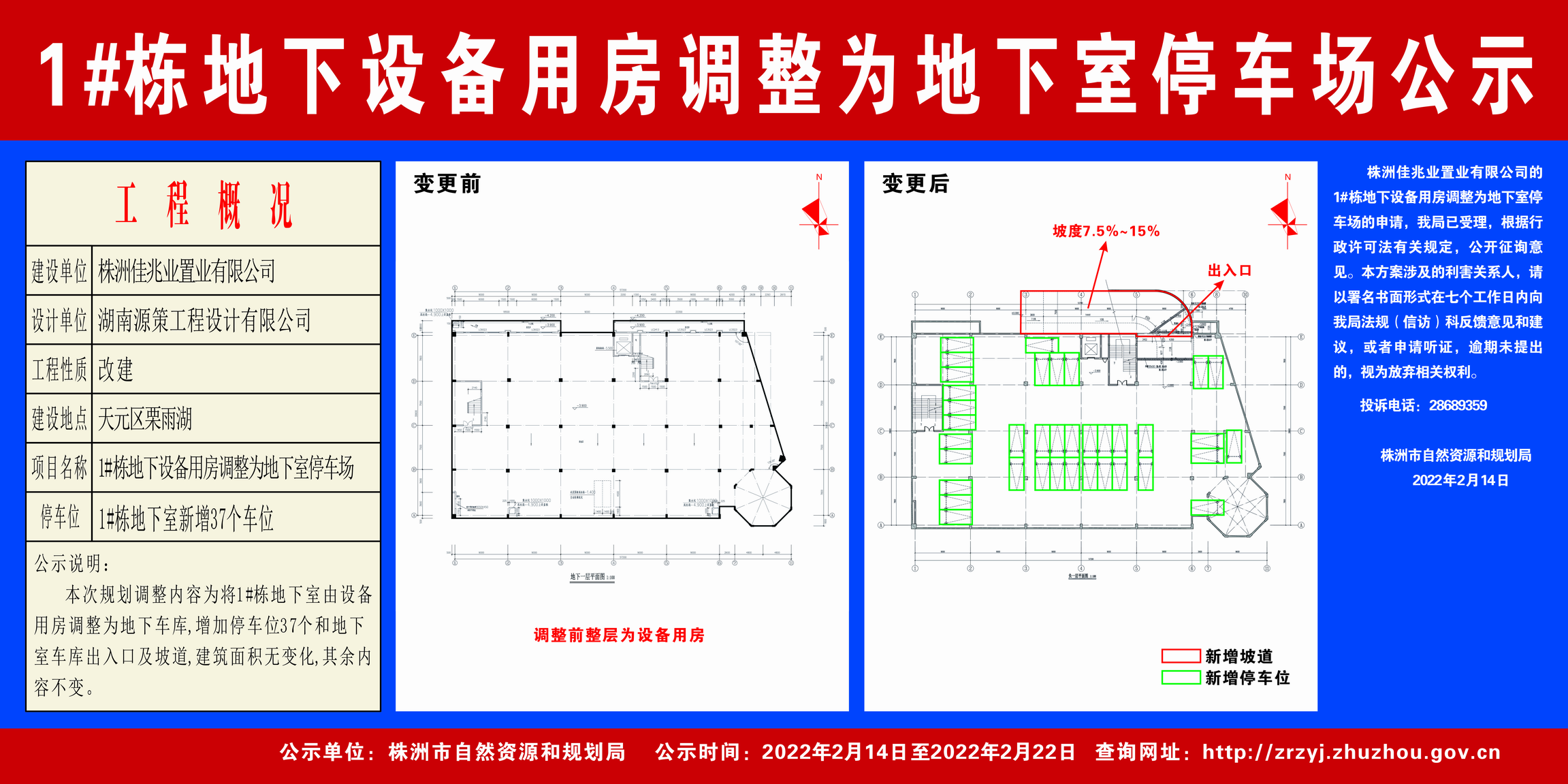株洲佳兆业置业有限公司(1#栋地下设备用房调整为地下室停车场公示)2