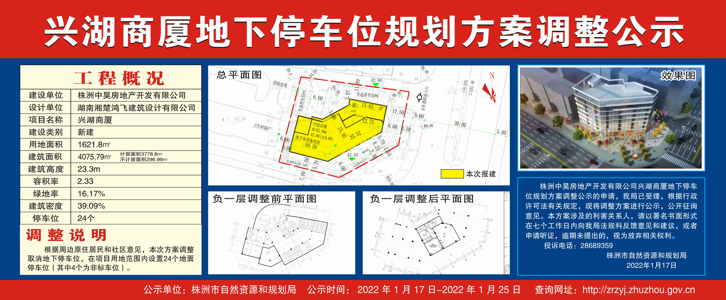 株洲中昊房地产开发有限公司兴湖商厦地下停车位规划方案调整公示2