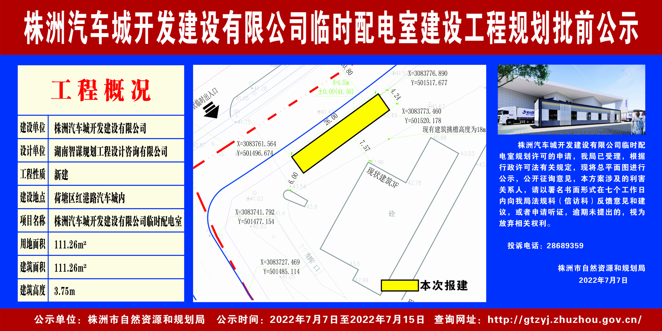 株洲汽车城开发建设有限公司临时配电室建设工程规划批前公示