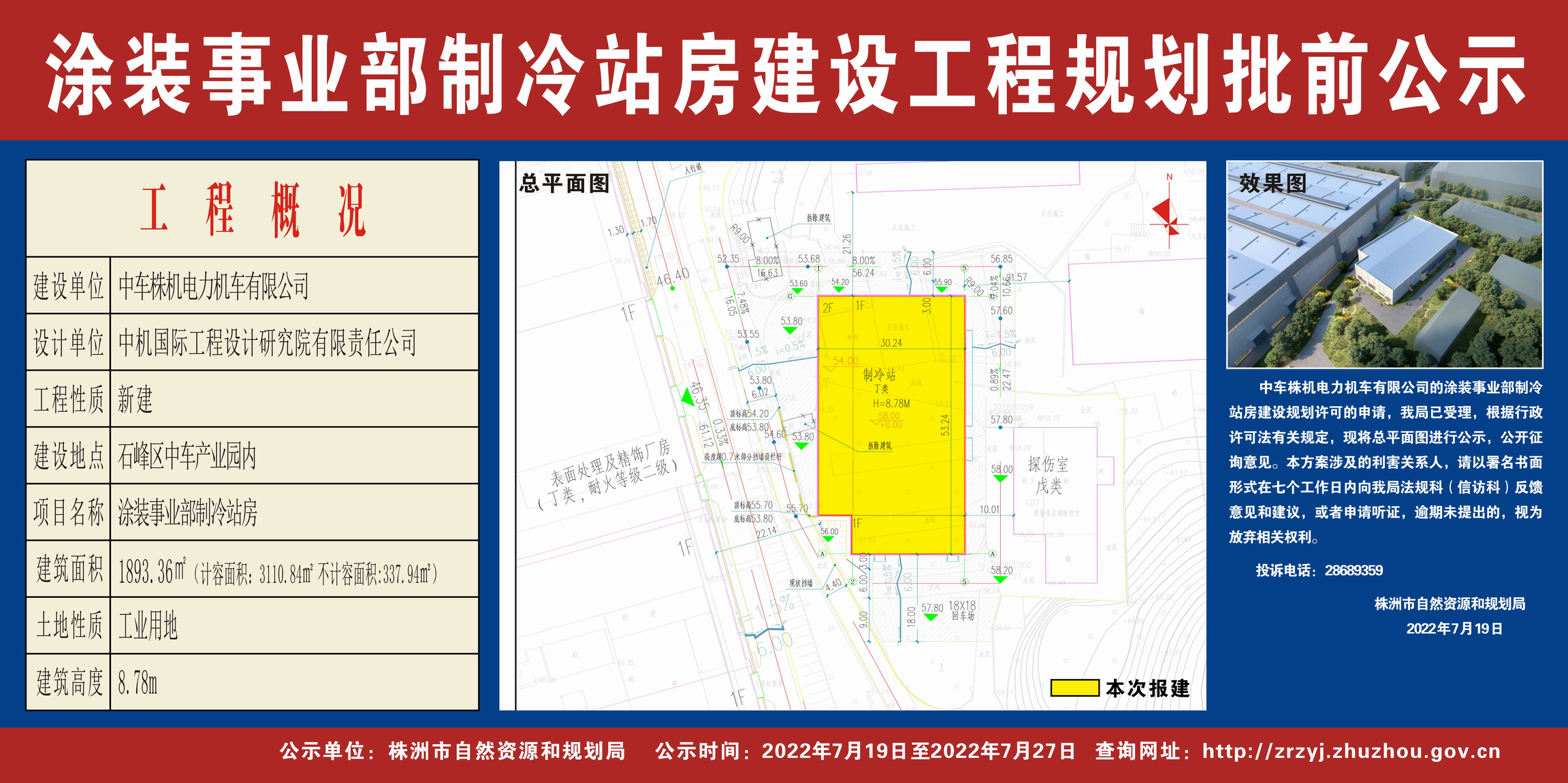 中车株机电力机车有限公司(涂装事业部制冷站房建设工程规划批前公示)2