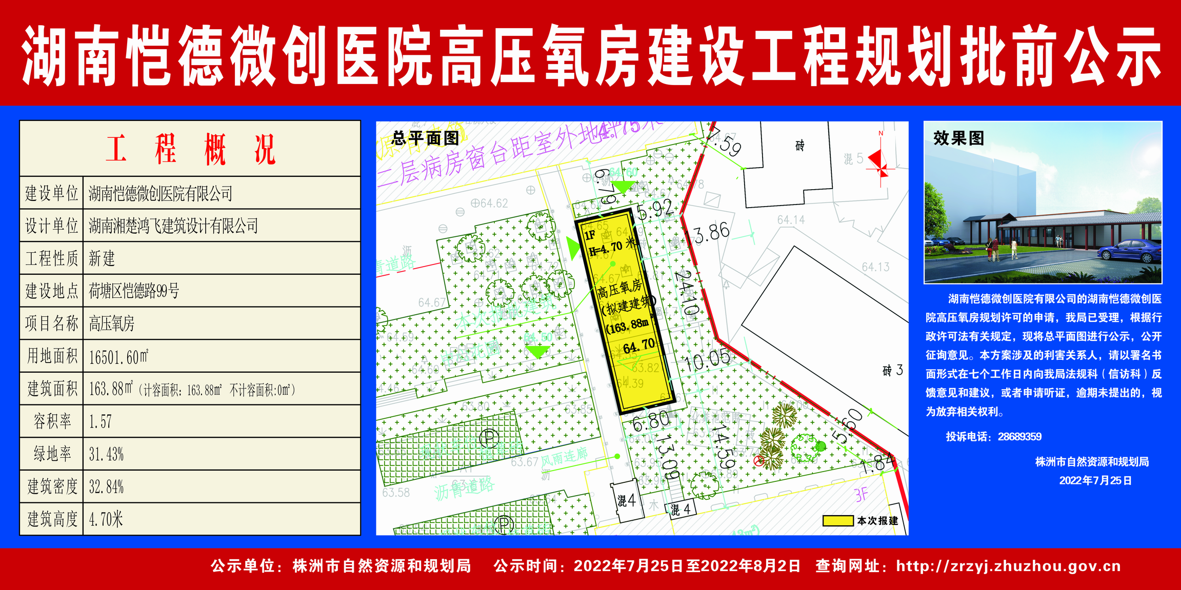 湖南恺德微创医院有限公司(湖南恺德微创医院高压氧房建设工程规划批前公示)2