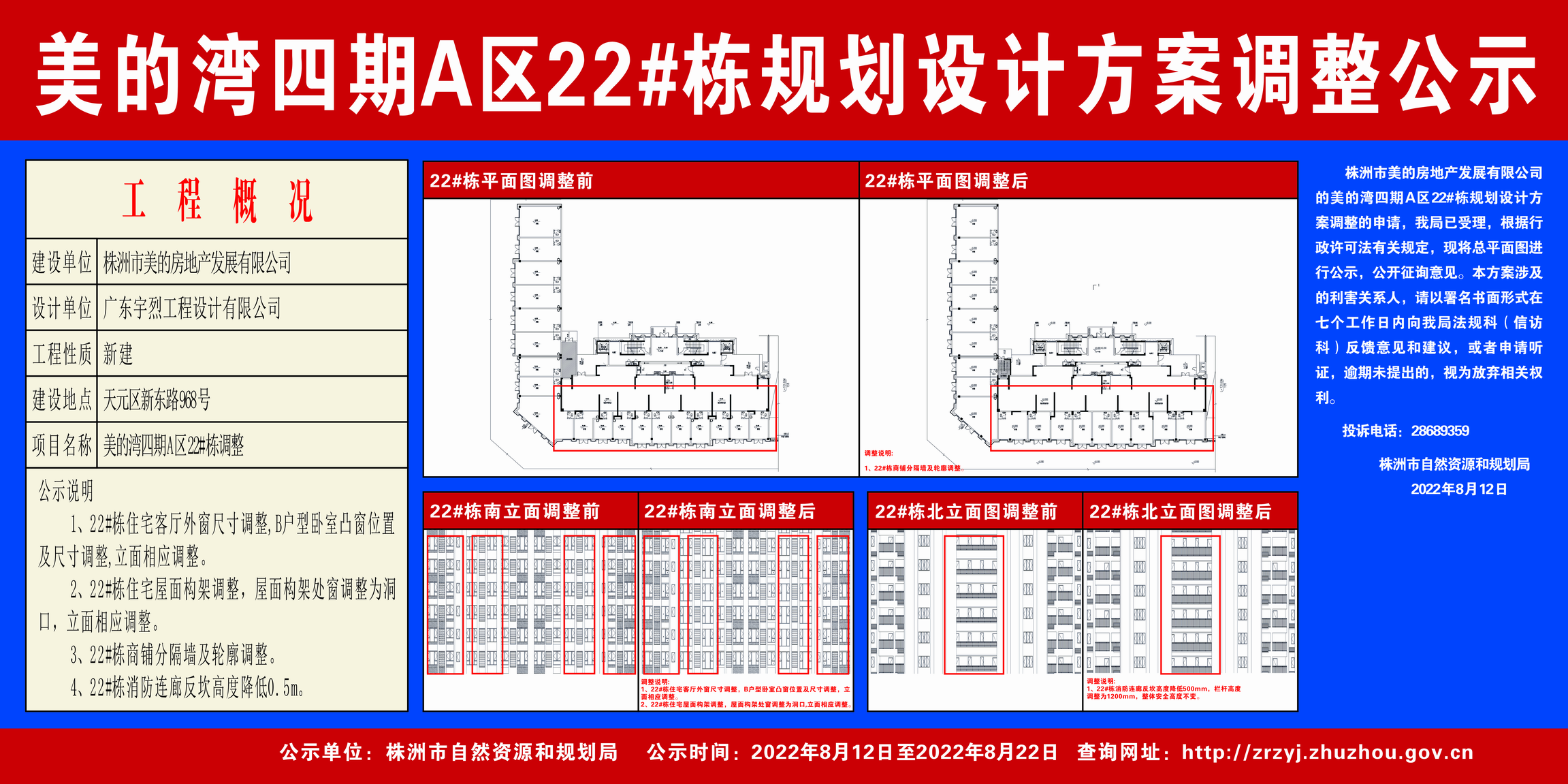 株洲市美的房地产发展有限公司(美的湾四期A区22#栋规划设计方案调整公示)2